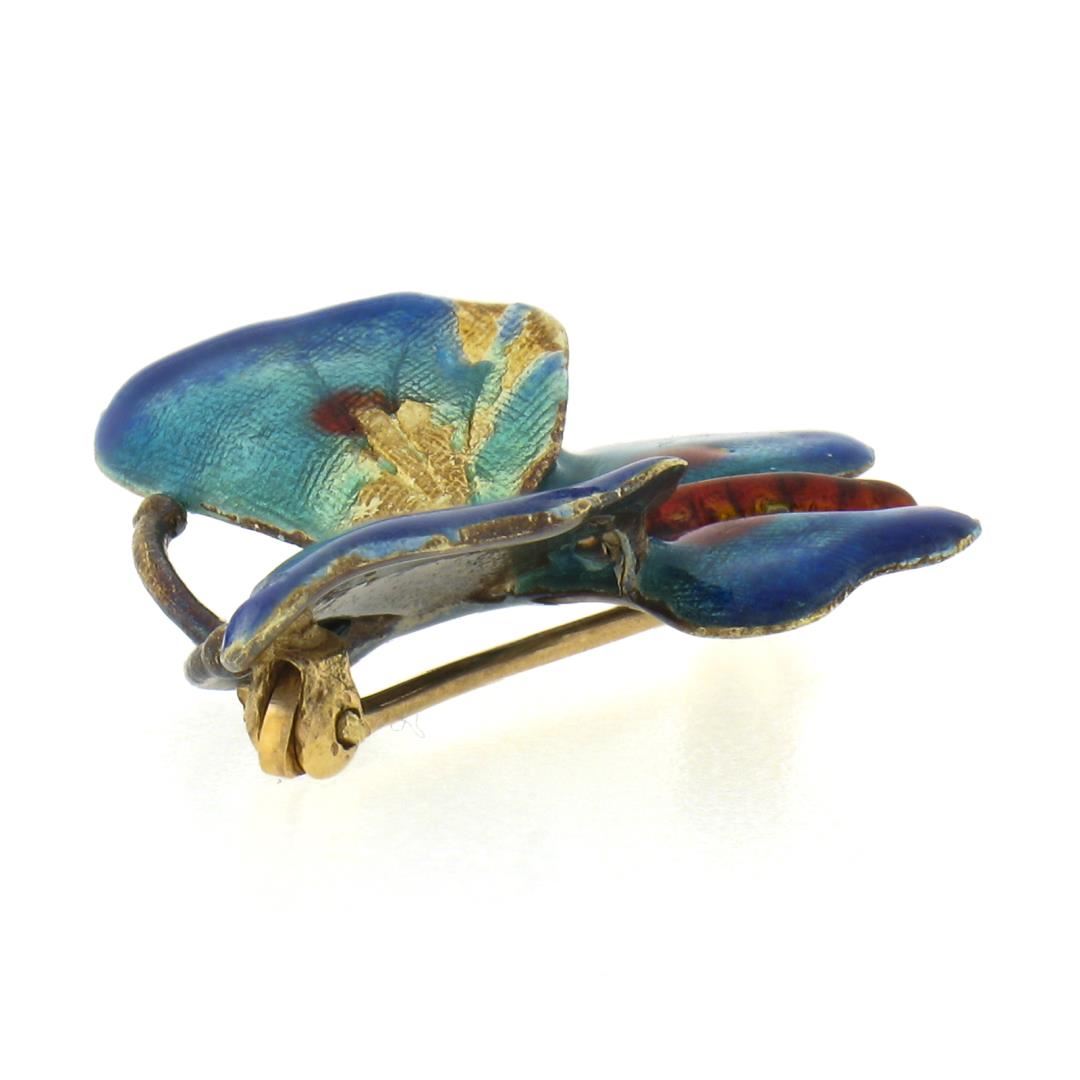 A vintage solid 14k yellow gold & colorful enamel work butterfly brooch. Measures 18.7x23.7mm and weighs a total of 4.1 grams.