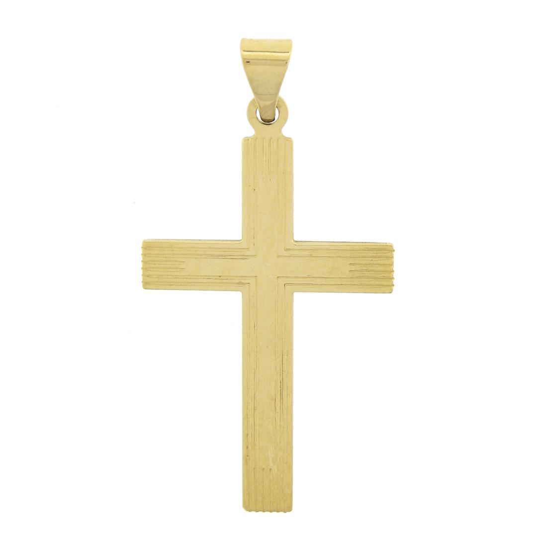 Vintage 14K Yellow Gold Grooved w/ Polished Finish Center Simple Cross Pendant