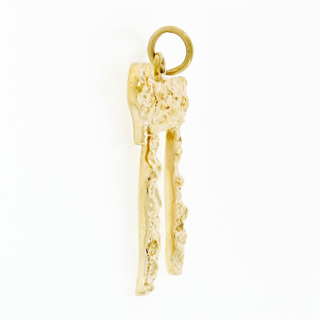 A vintage solid 14k yellow gold textured chai symbol charm pendant. The pendant weighs a total of 5.35 grams, measures 27.76x25.15mm including the bail, and the inside of the bail measures 3.90x3.90mm.