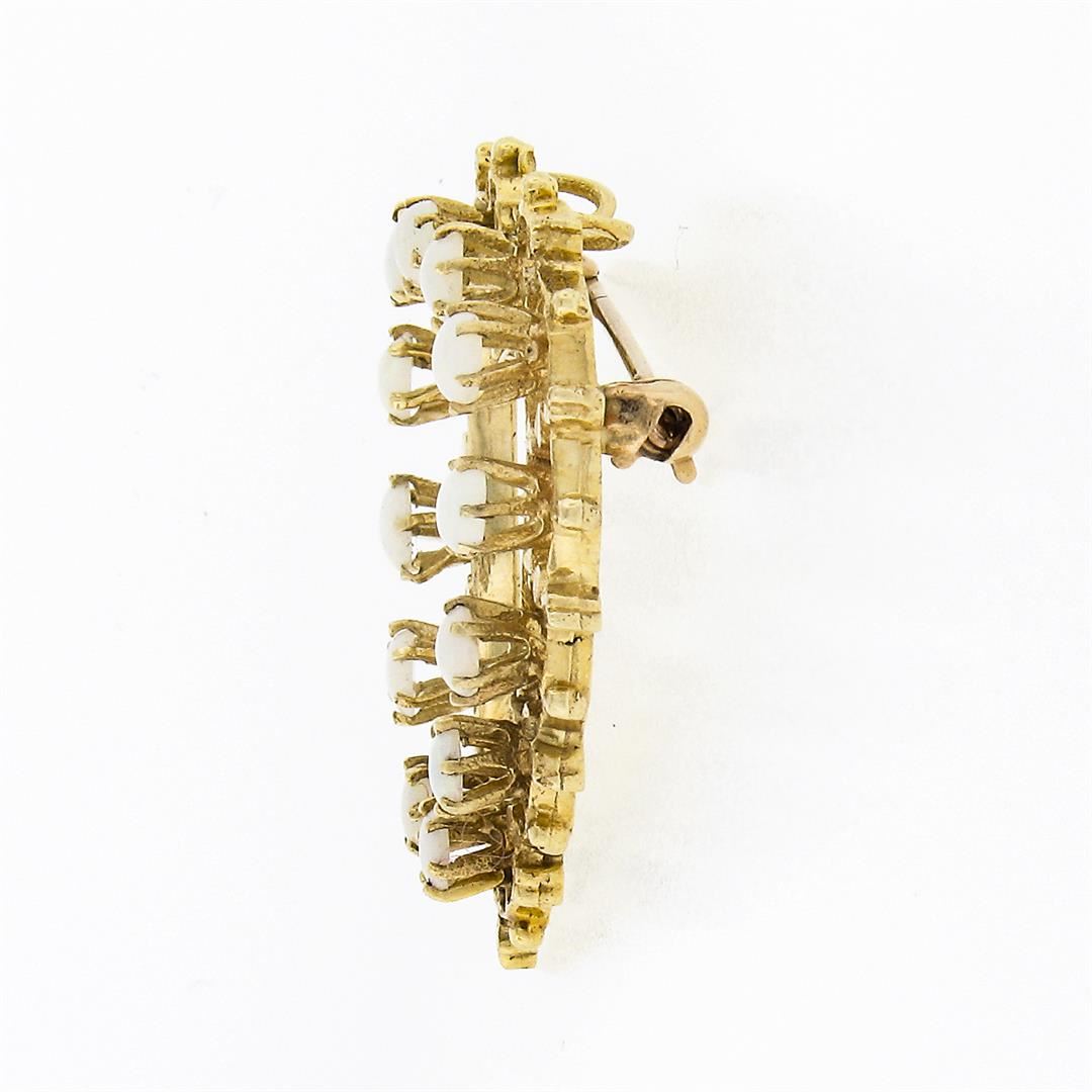 A vintage solid 14k yellow gold heat pin brooch pendant, with 12 round cabochon cut natural opals (3.0-3.5mm each). Measures 29.50x30mm and weighs a total of 6.20 grams.