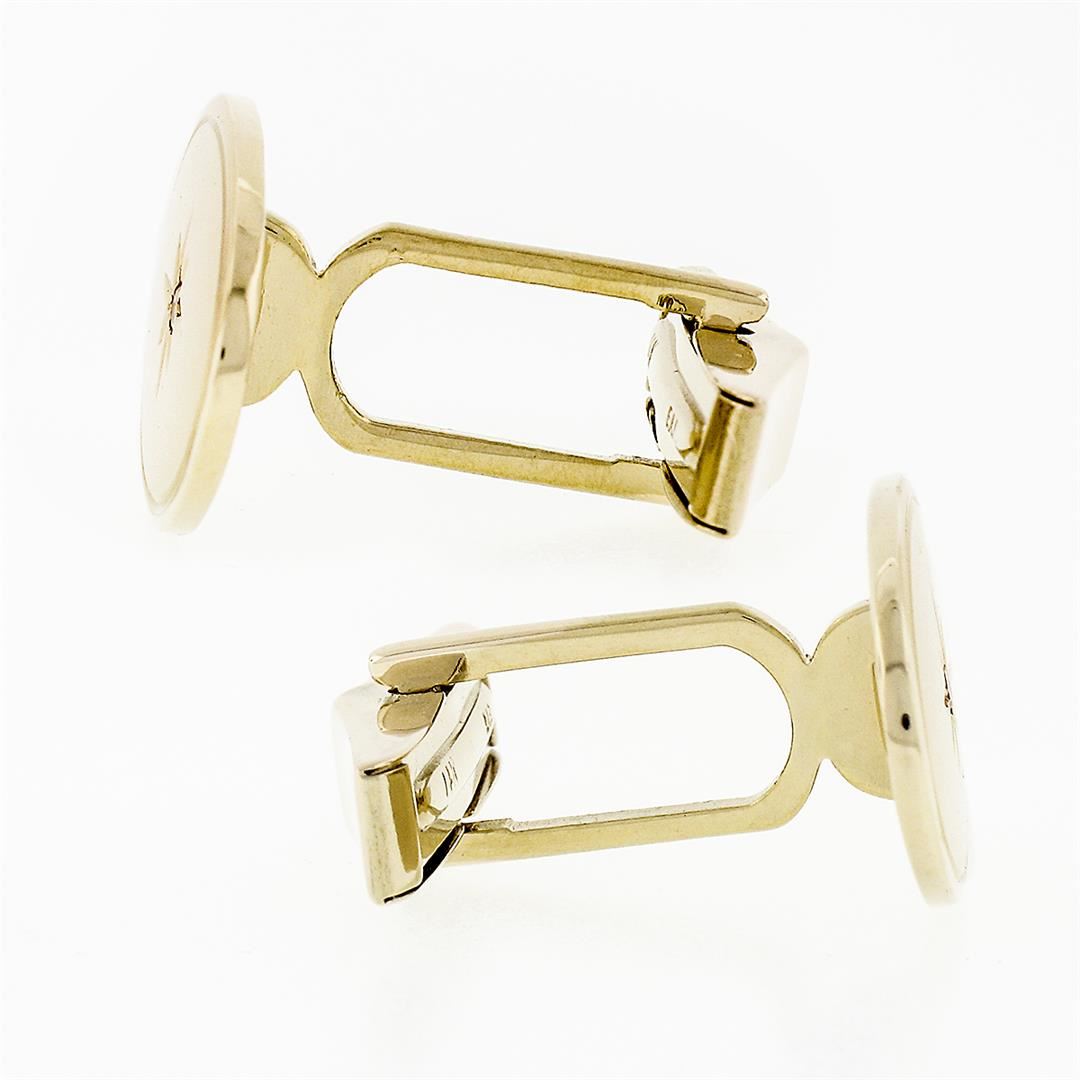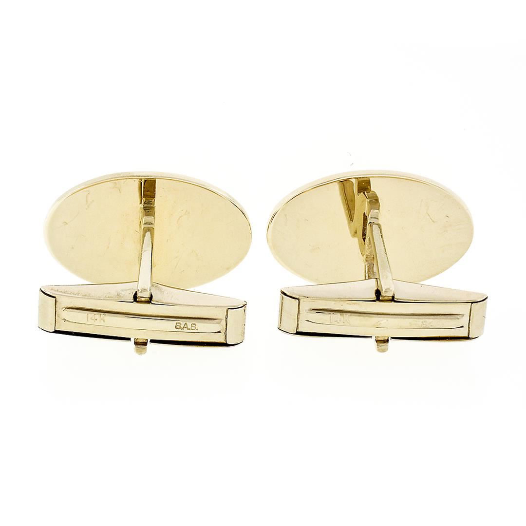 Vintage 14k Gold 0.04 ctw Round Single Cut Diamond Etched Polished Oval Cufflink