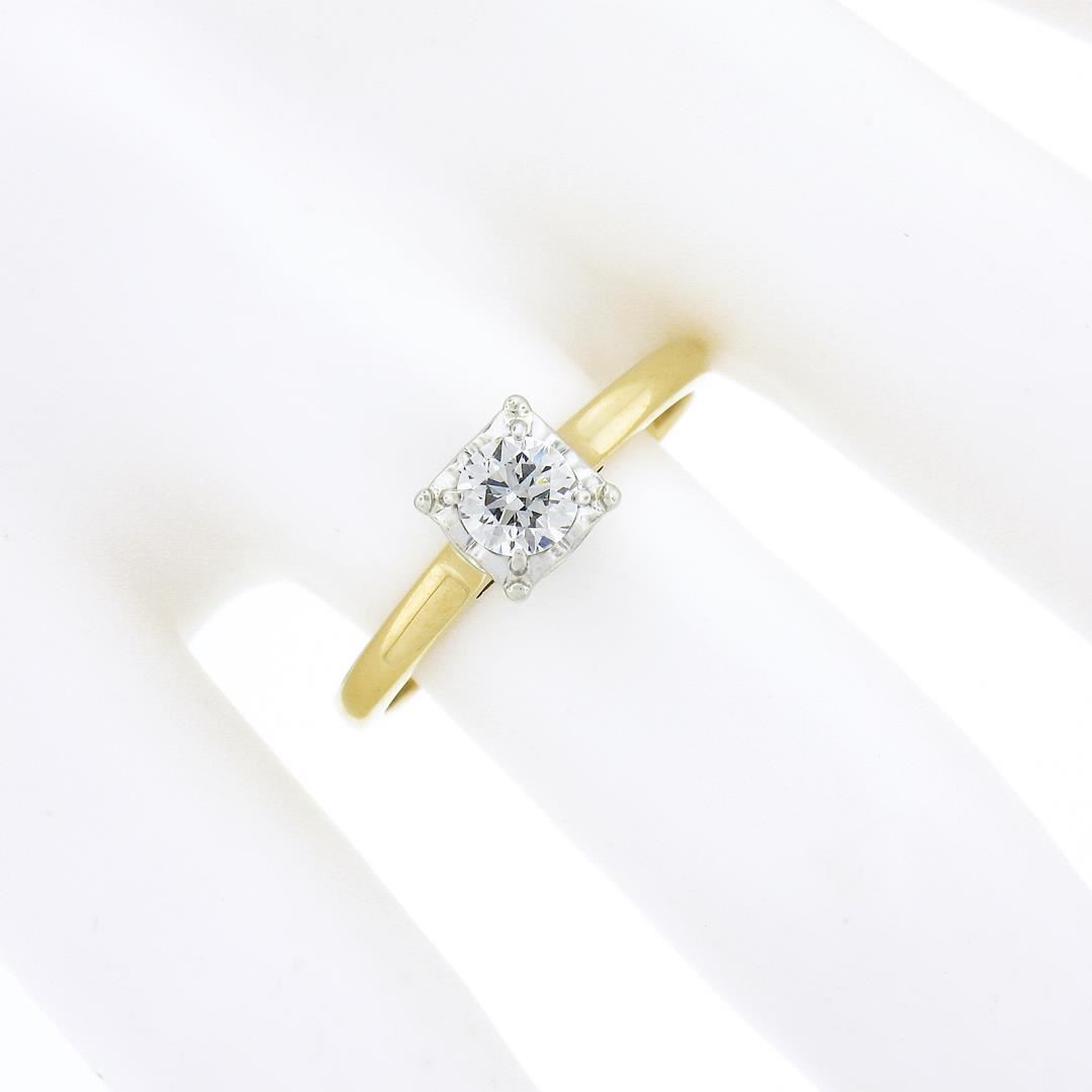 A vintage solid 14k yellow & white gold soliatire engagement ring, with 1 old transitional cut natural diamond (F - VS2 ; 0.38ct). The ring is size 7.5, weighs a total of 2.91 grams, and measures 5.9mm wide.