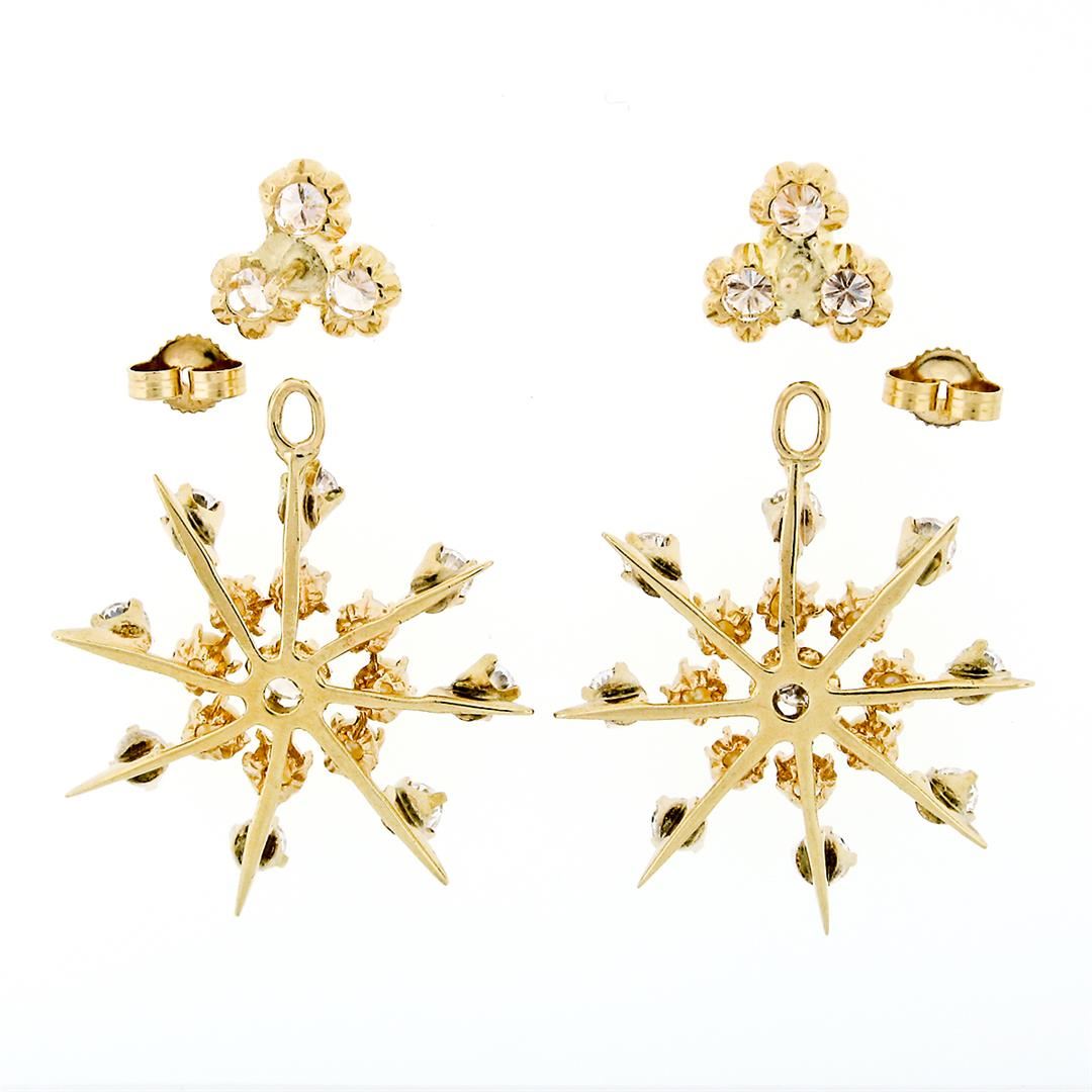 A vintage pair of solid 14k yellow gold earrings with 24 natural diamonds (G/H - VVS2/VS2; 2.75ctw) and 8 cultured pearls (2.5mm). The earrings measure approximately 32.96x25.13mm and weigh a total of 9.00 grams.