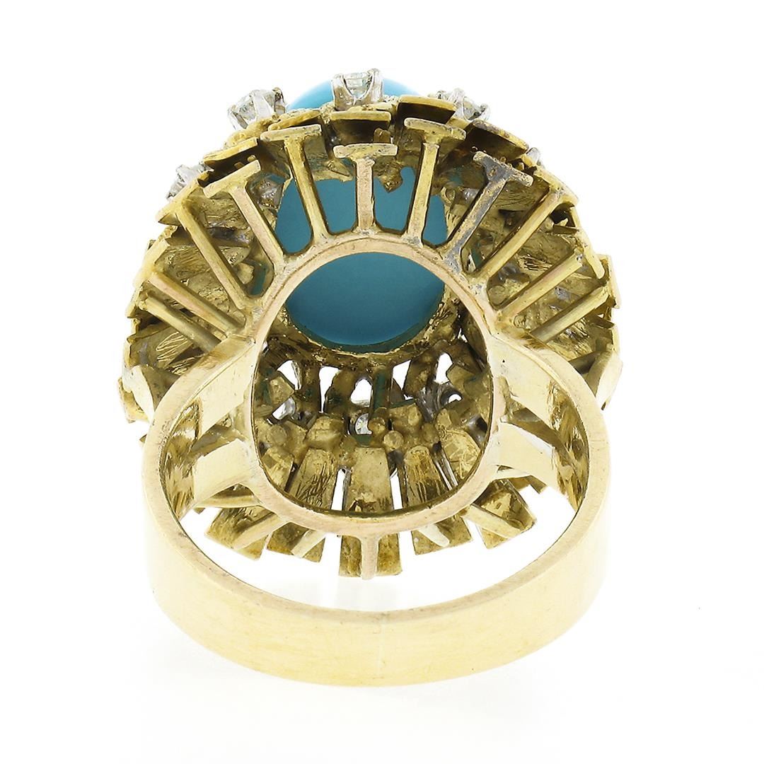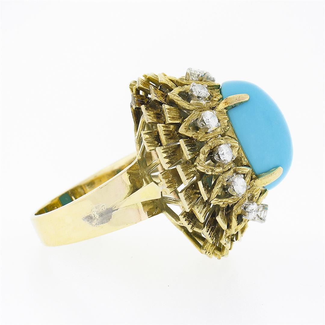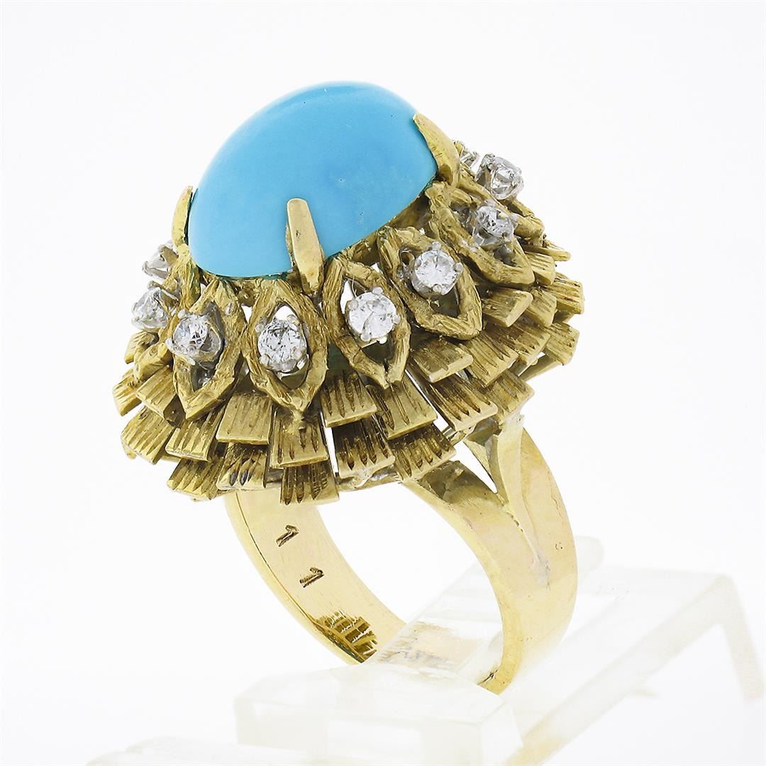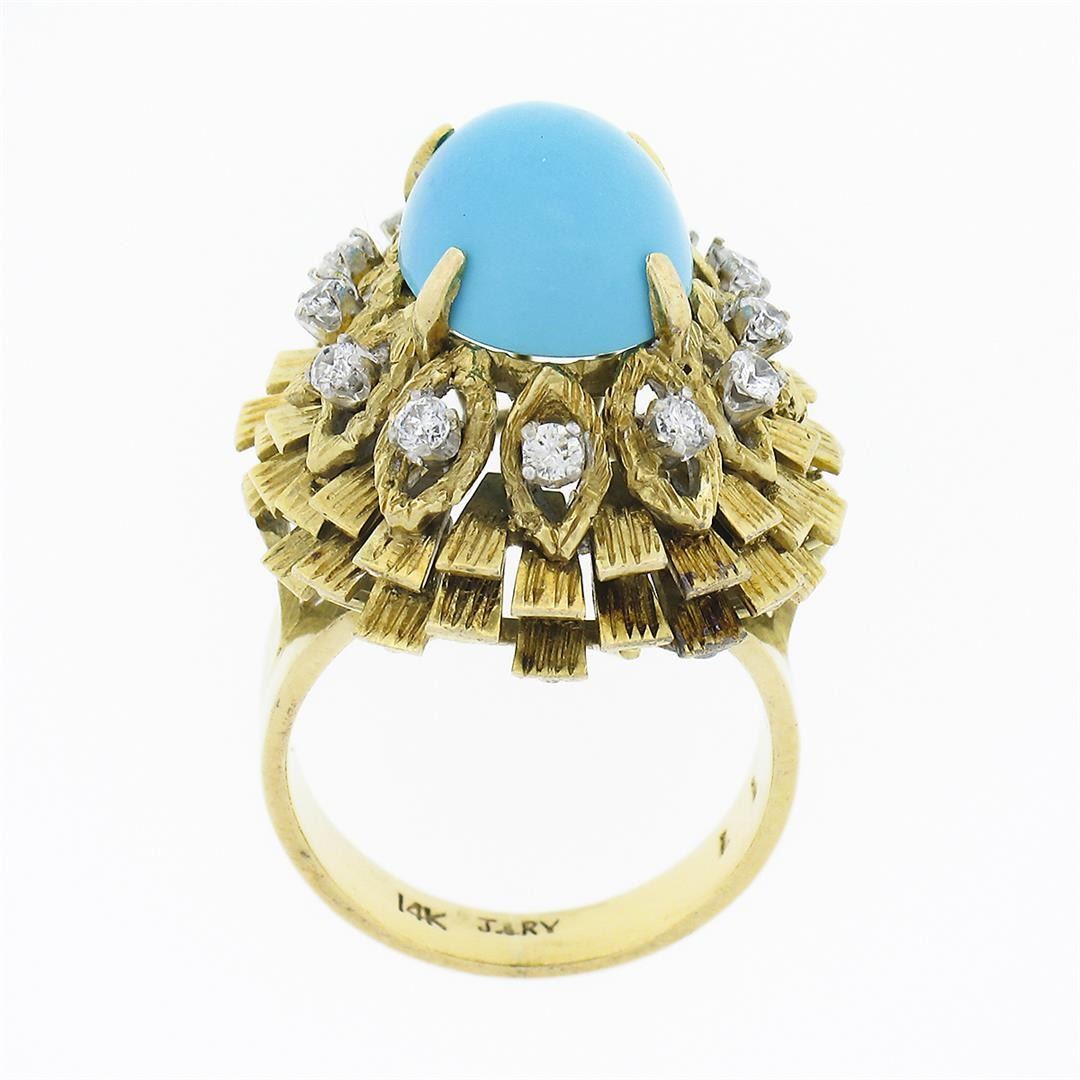 Vintage 14k Gold Cabochon Turquoise.36 ctw Diamond Textured Layered Cocktail Rin
