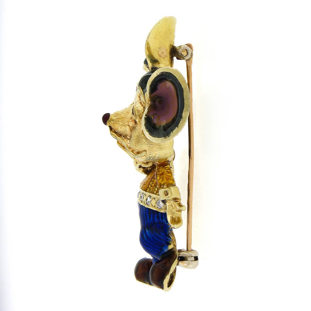 A vintage solid 14k yellow gold mouse brooch, with enamel work & 7 old single cut natural diamonds (G/H - VS2/SI1 ; 0.07ctw). Measures 45.70x27.3mm and weighs a total of 16.69 grams.