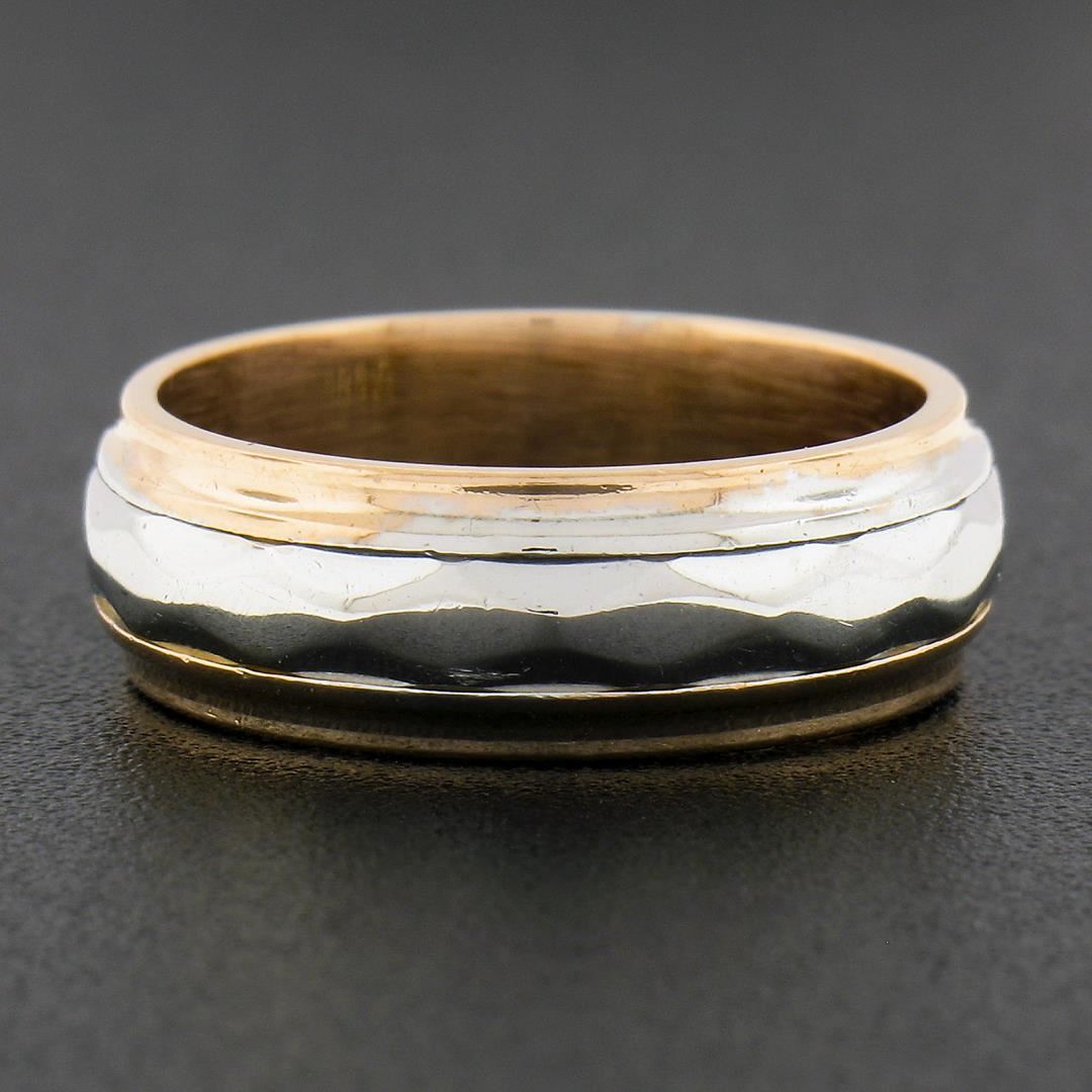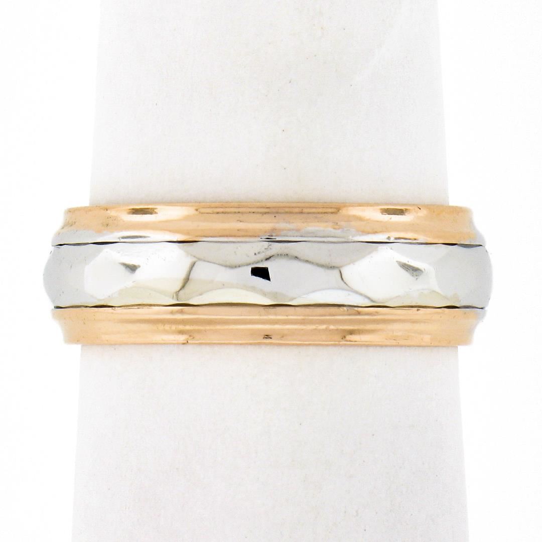 A vintage solid 14k rose & white gold band ring. The ring is size 5.0, weighs a total of 5.18 grams, and measures 5.9mm wide.
