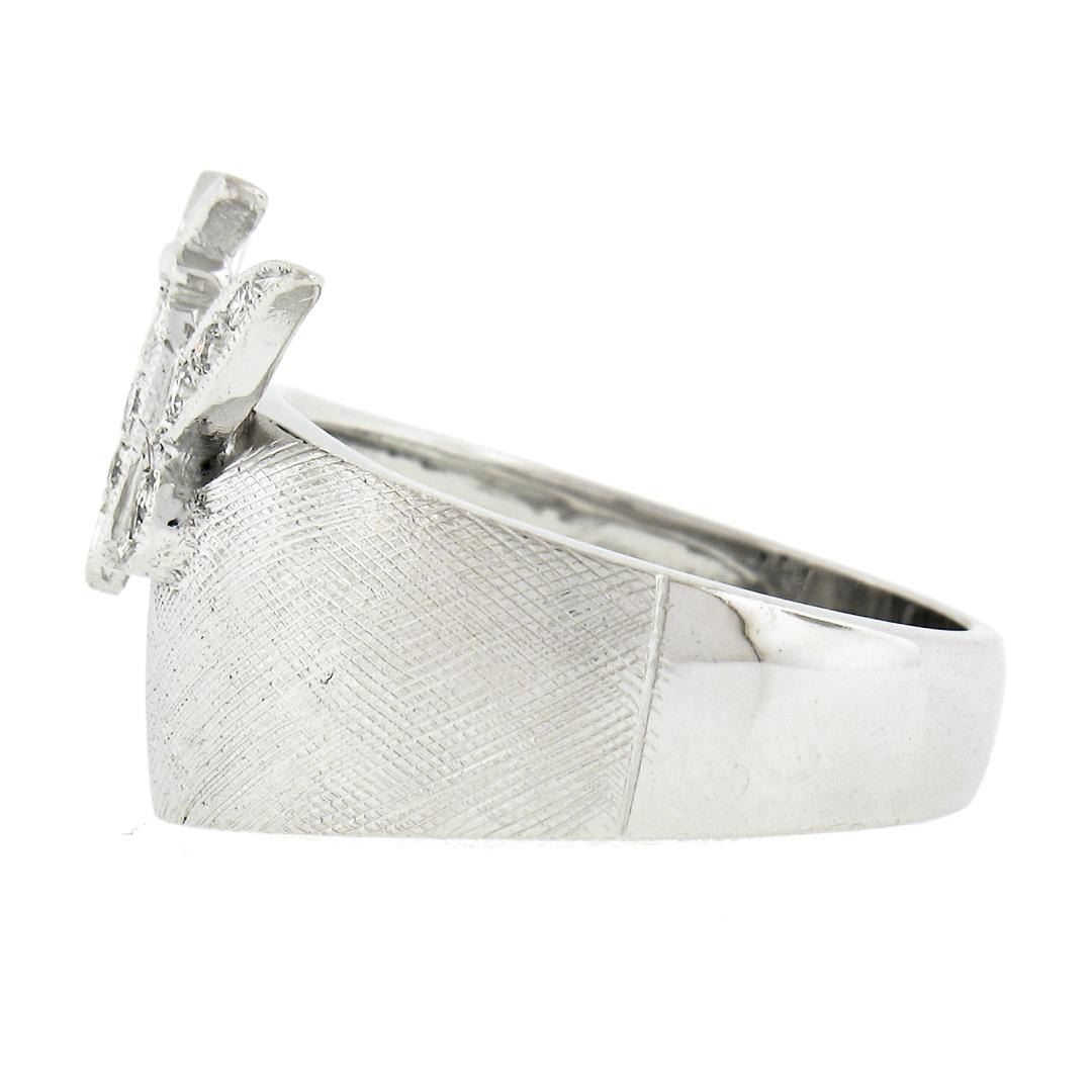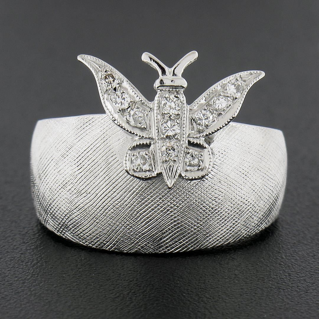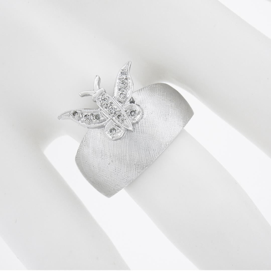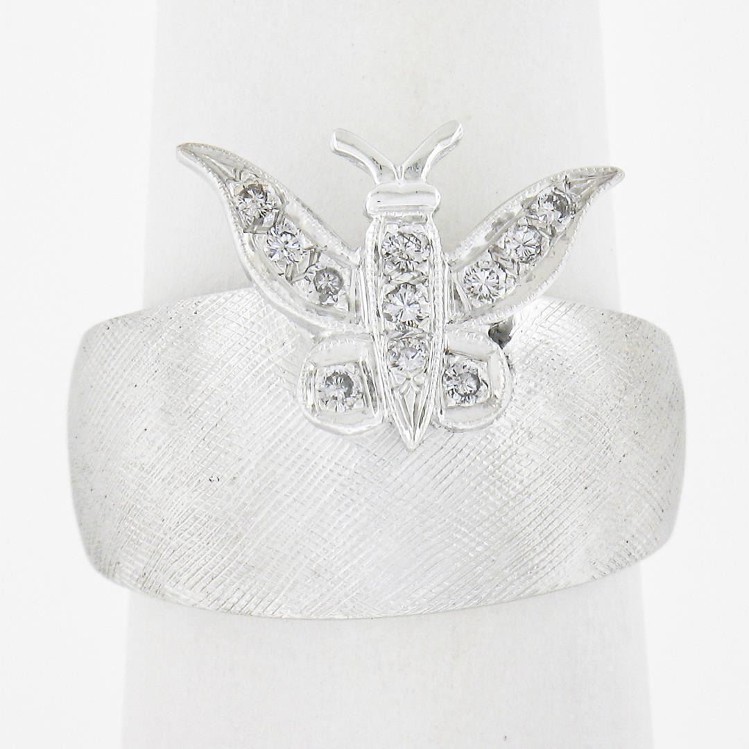 A vintage solid 14k white gold ring, with 11round cut natural diamonds (G-I - VS1-SI1 ; 0.13ctw). The ring is size 6.5, weighs a total of 7.05 grams, and measures 15.8mm wide.