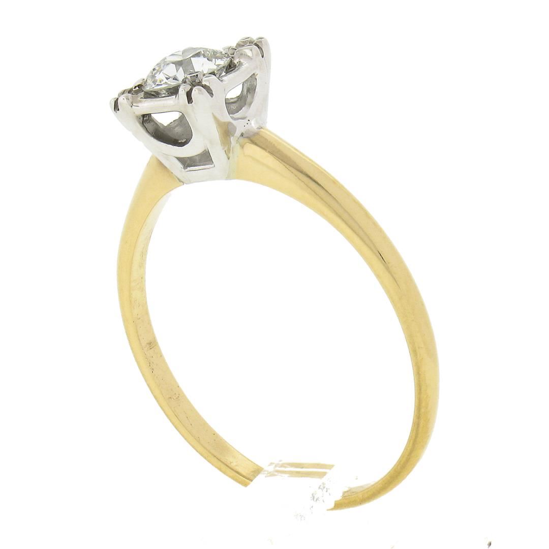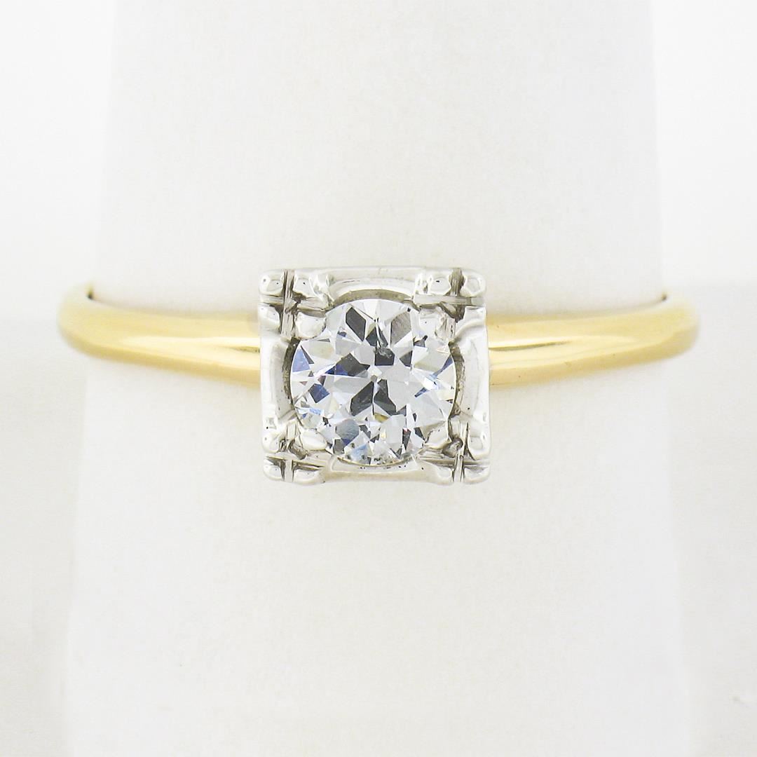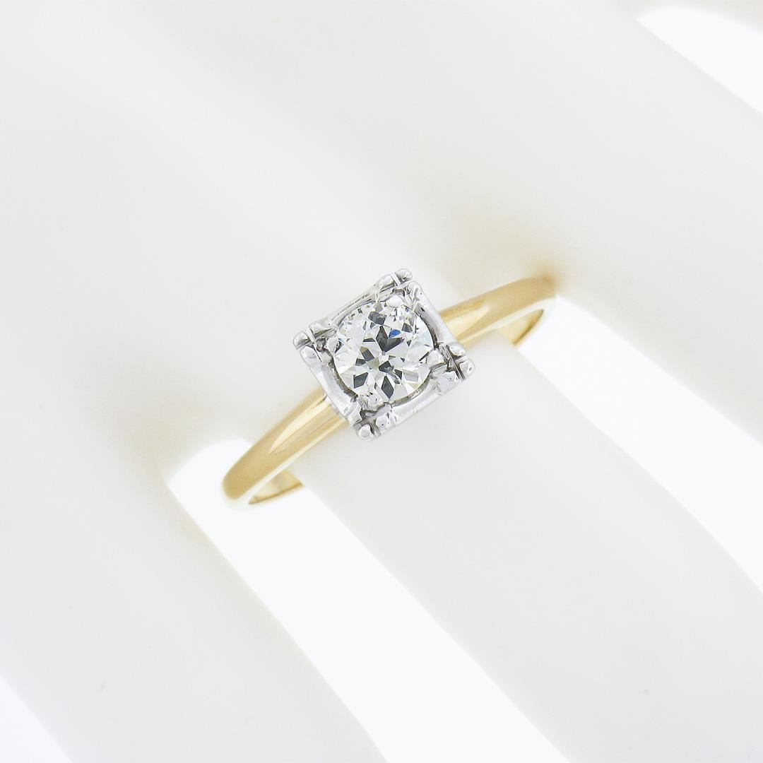 A vintage solid 14k yellow & white gold engagement ring, with 1 old european cut natural diamond (H - SI2 ; 0.56ct). The ring is size 10.5, weighs a total of 3.10 grams, and measures 7.1mm wide.