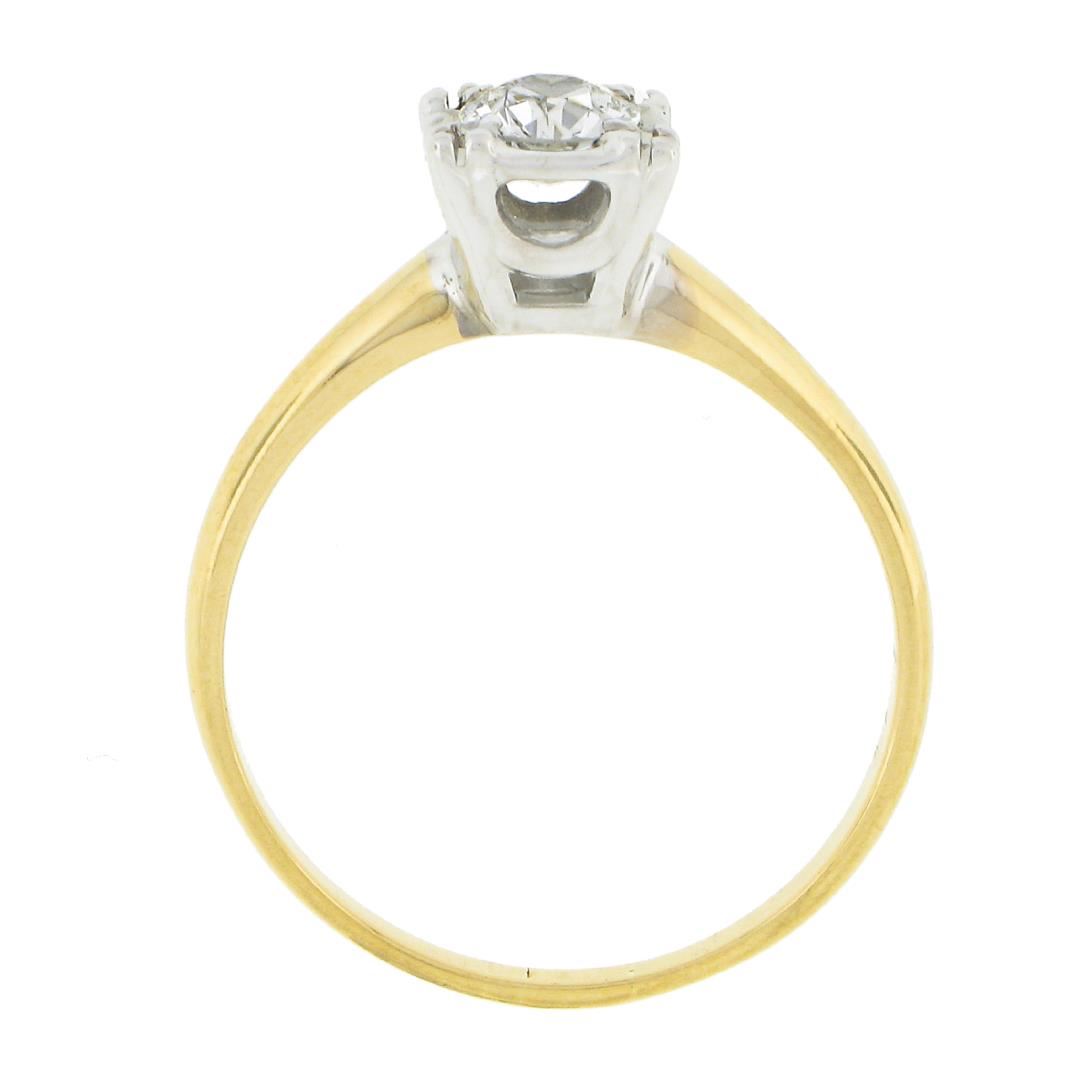 A vintage solid 14k yellow & white gold engagement ring, with 1 old european cut natural diamond (H - SI2 ; 0.56ct). The ring is size 10.5, weighs a total of 3.10 grams, and measures 7.1mm wide.