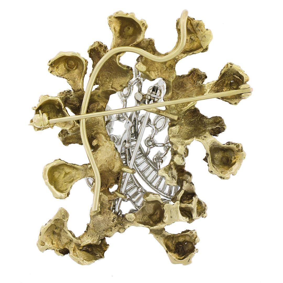 Vintage 14k TT Gold 3.50 ctw Diamond Textured Freeform Open Work Brooch Pin