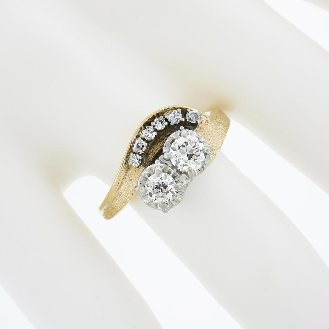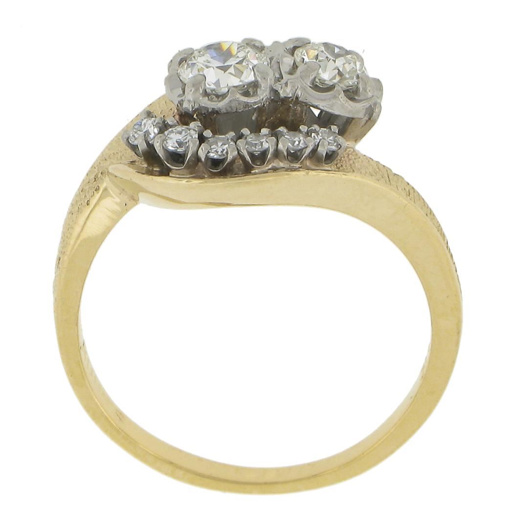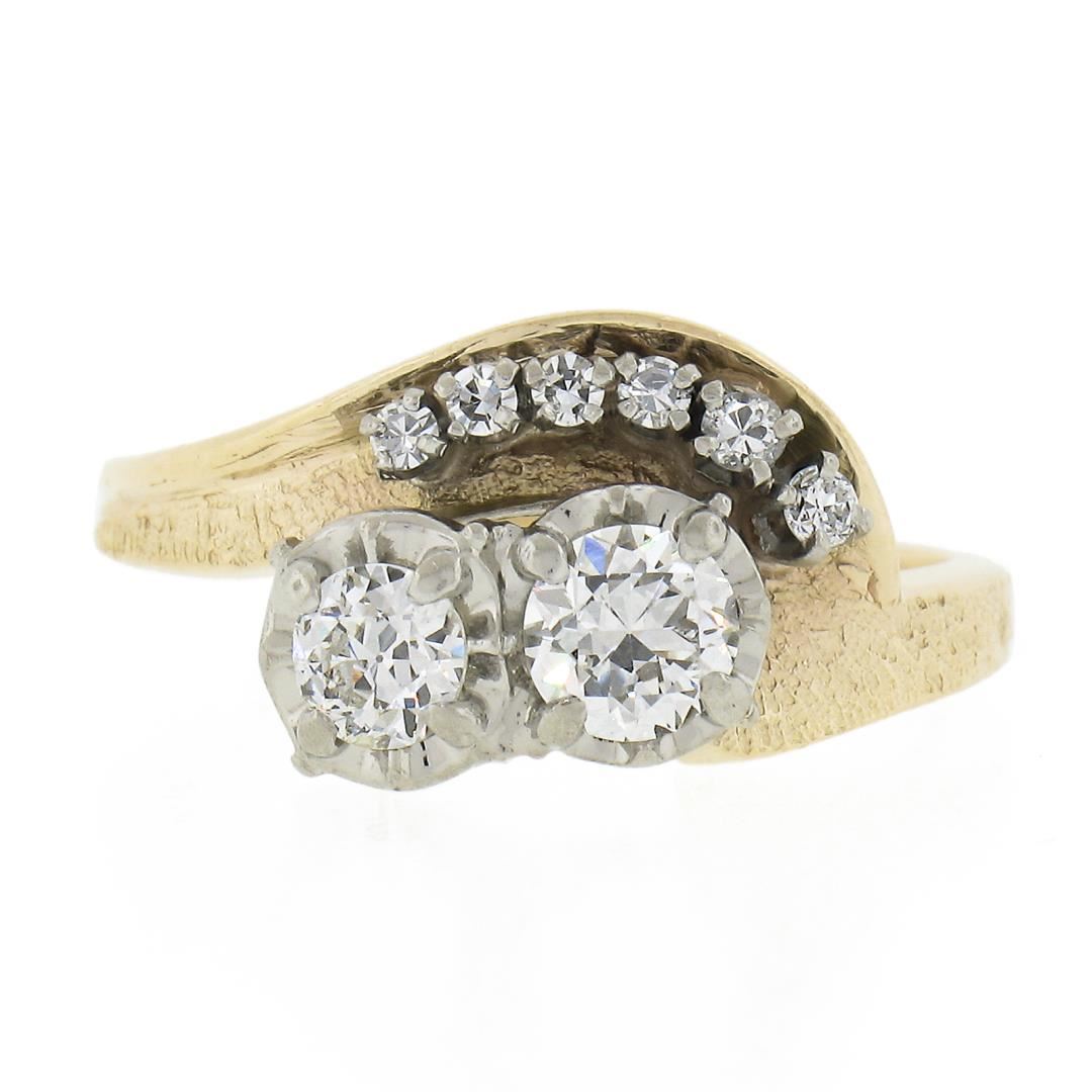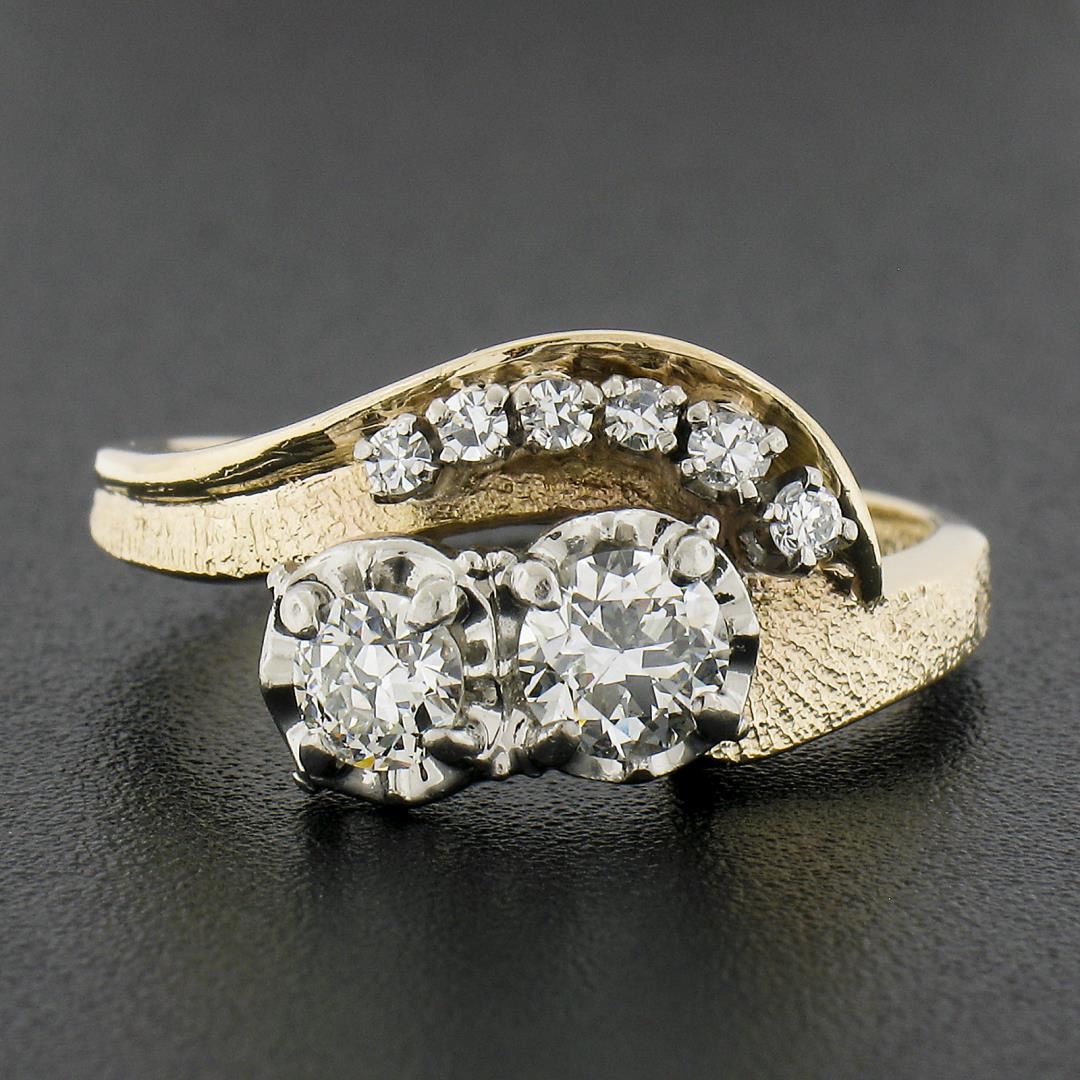 Vintage 14k TT Gold .82ct Diamond Textured & Polished Statement Cocktail Ring