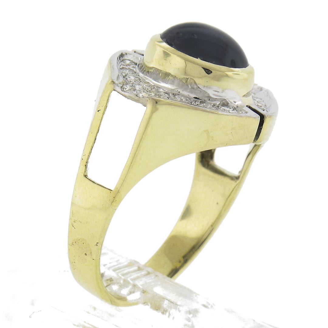 Vintage 14k TT Gold Cabochon Blue Star Sapphire w/ Round Diamond Cocktail Ring