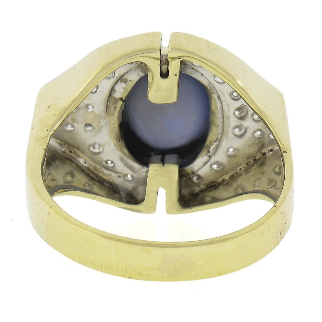 Vintage 14k TT Gold Cabochon Blue Star Sapphire w/ Round Diamond Cocktail Ring