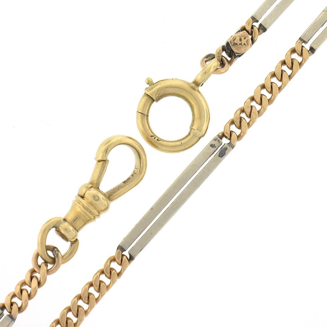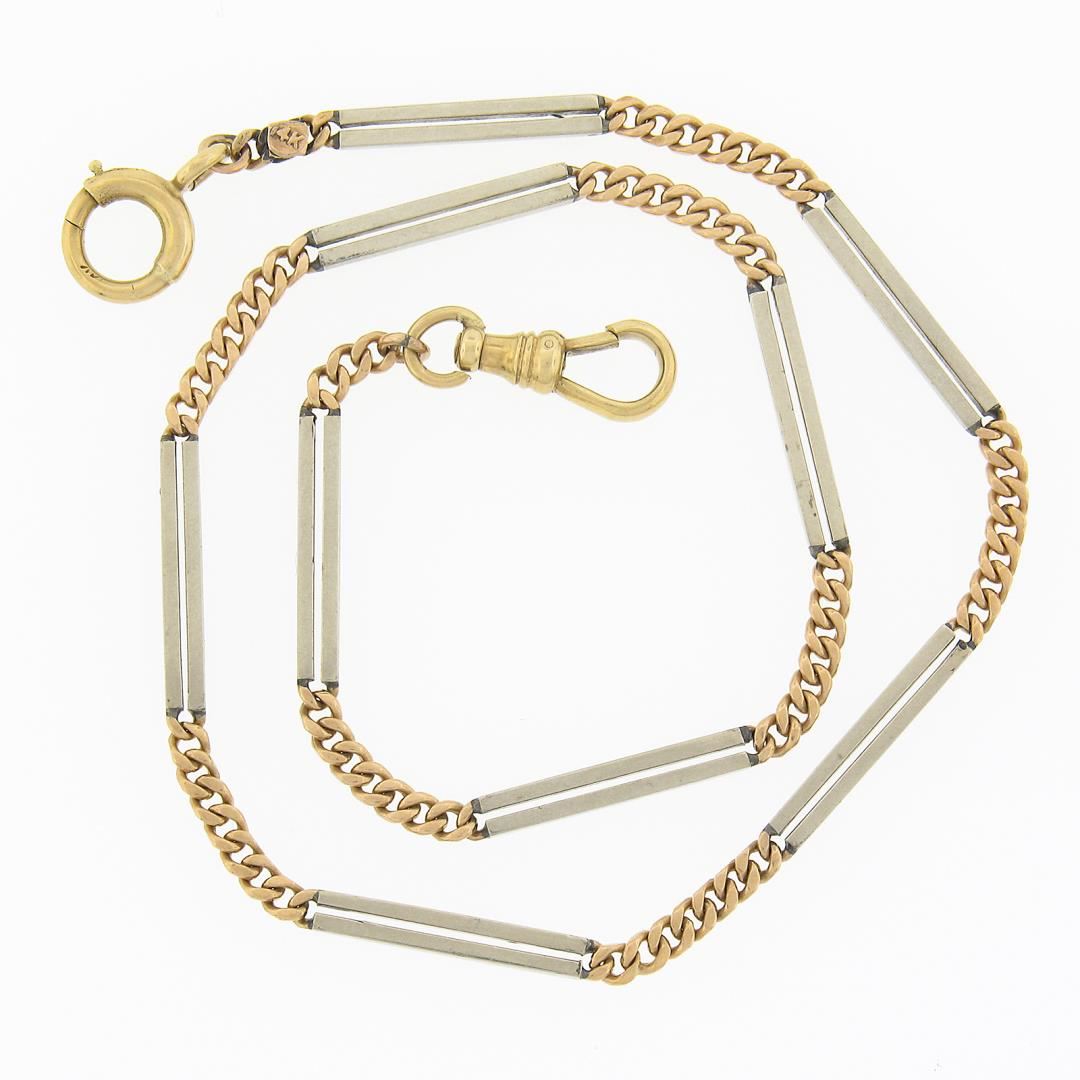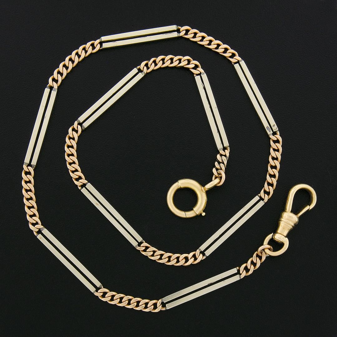Vintage 14k Two Tone Gold 13.5" Polished Open Bar & Curb Link Pocket Watch Chain