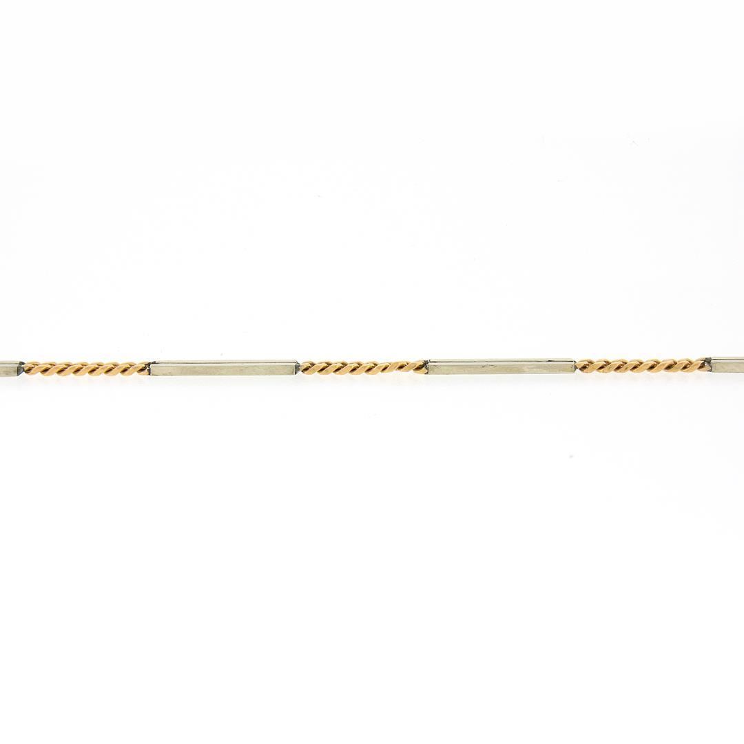 Vintage 14k Two Tone Gold 13.5  Polished Open Bar & Curb Link Pocket Watch Chain