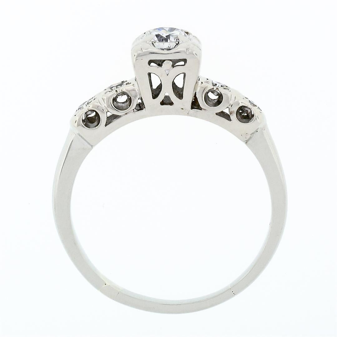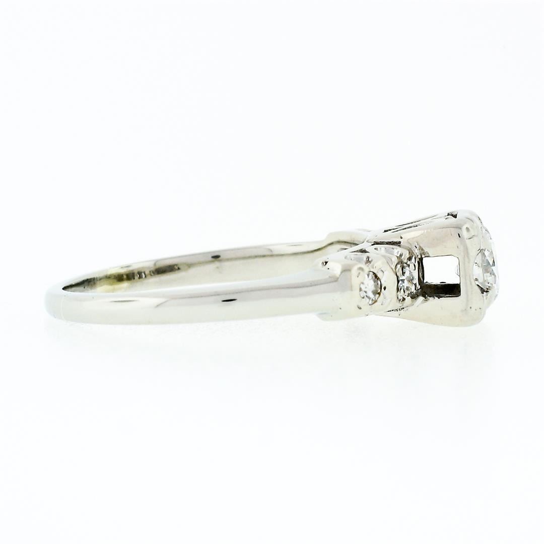A vintage solid 14k white gold ring with 1 round transitional cut natural diamond (G - VS2; 0.27ct) and 4 round single cut natural diamonds (G/H - VS2; 0.10ctw). The ring is size 6.0, weighs a total of 2.90 grams, and measures 5.90mm wide.