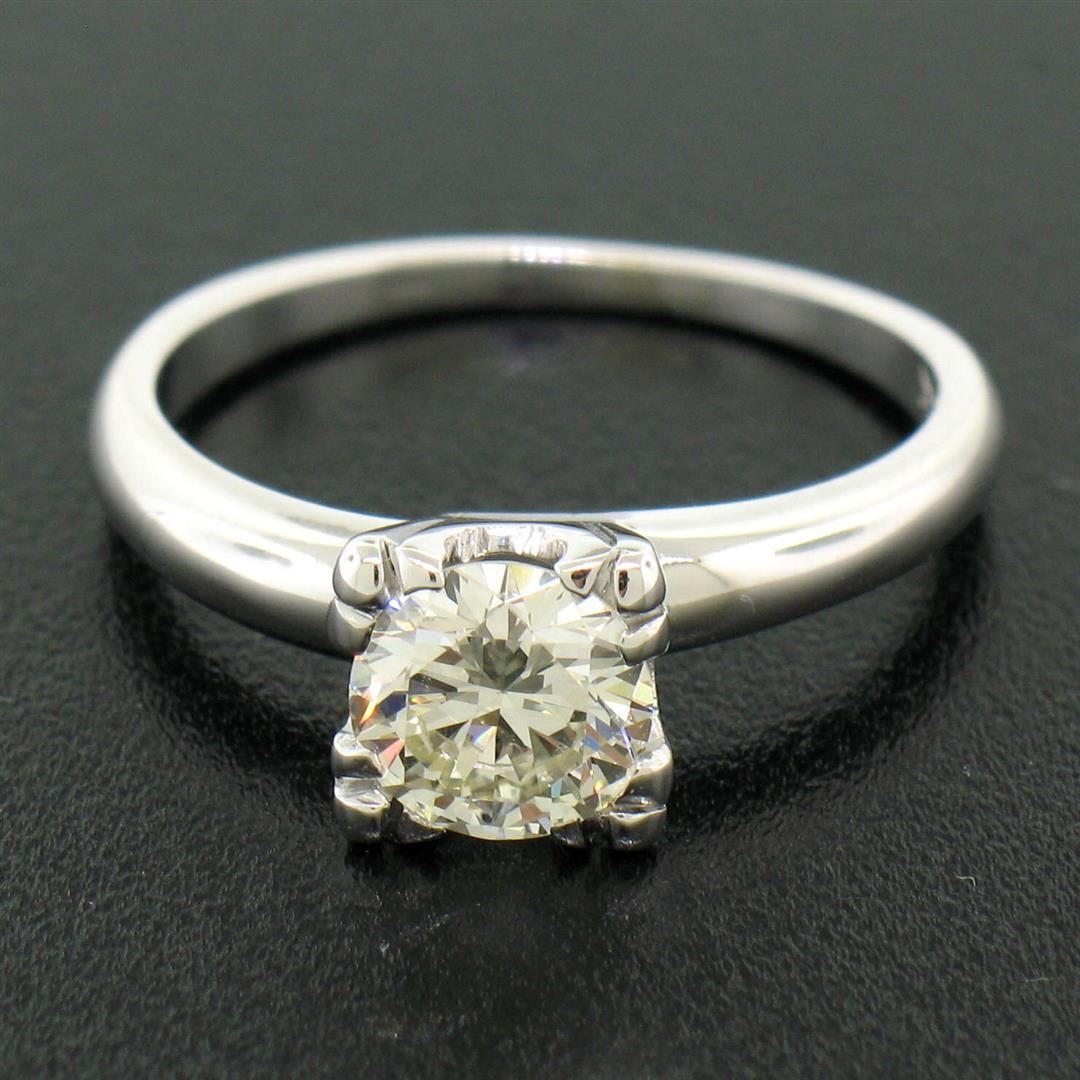 A vintage solid 14k white gold solitaire ring, with 1 round brilliant cut natural diamond (I - VVS2; 0.83ct). The ring is size 5.75, weighs a total of 2.9 grams, and measures 6.56mm wide.