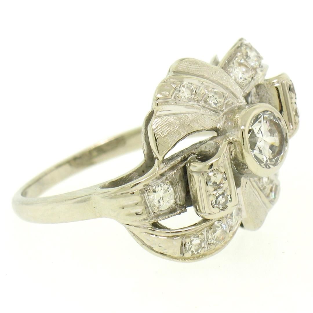 Vintage 14k White Gold 1.0ctw Round Brilliant & Single Cut Diamond Cocktail Ring. Please see photos and description for all available information. A vintage solid 14k whte gold cocktail ring, with 1 round brilliant cut natural diamond (G- VS1; 0.50ct), and 16 round brilliant cut natural diamonds (G/H - VS1/VS2; 0.50ctw). The ring is size 7.0, weighs a total of 5.2 grams, and measures 15.75mm wide.
