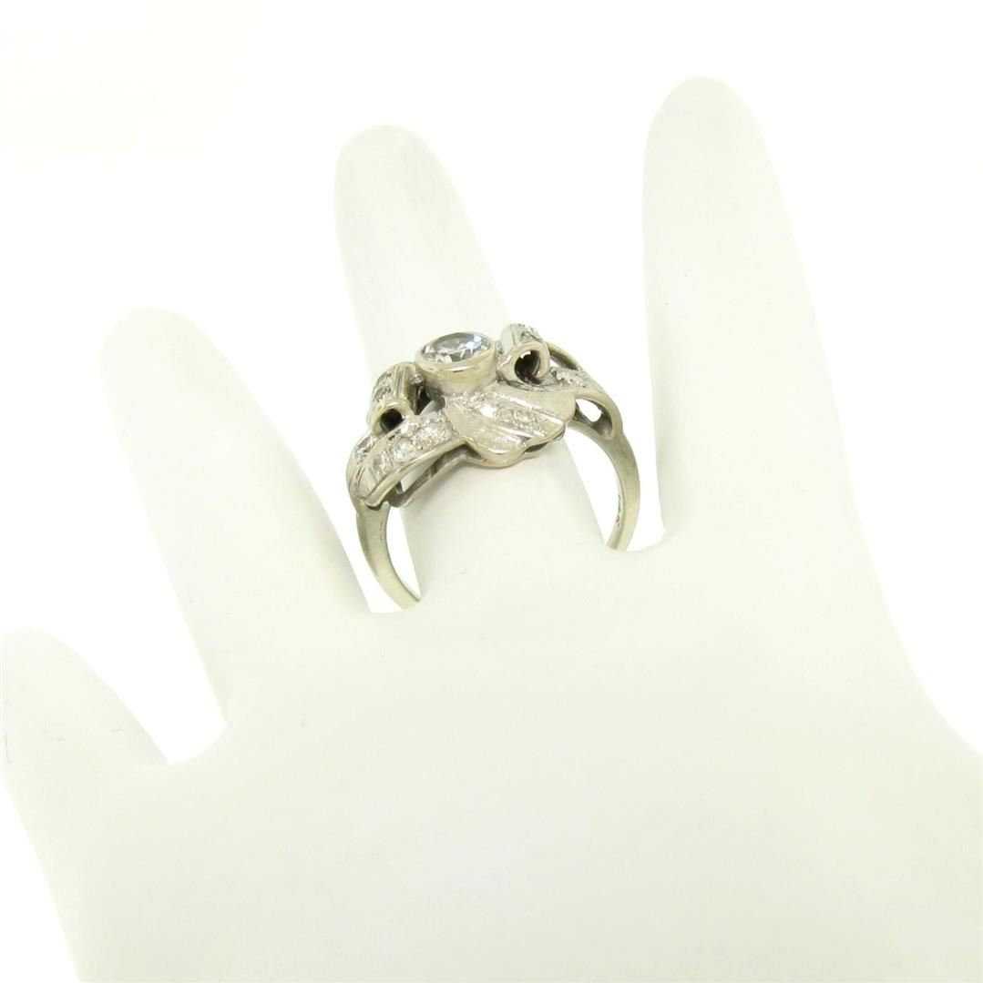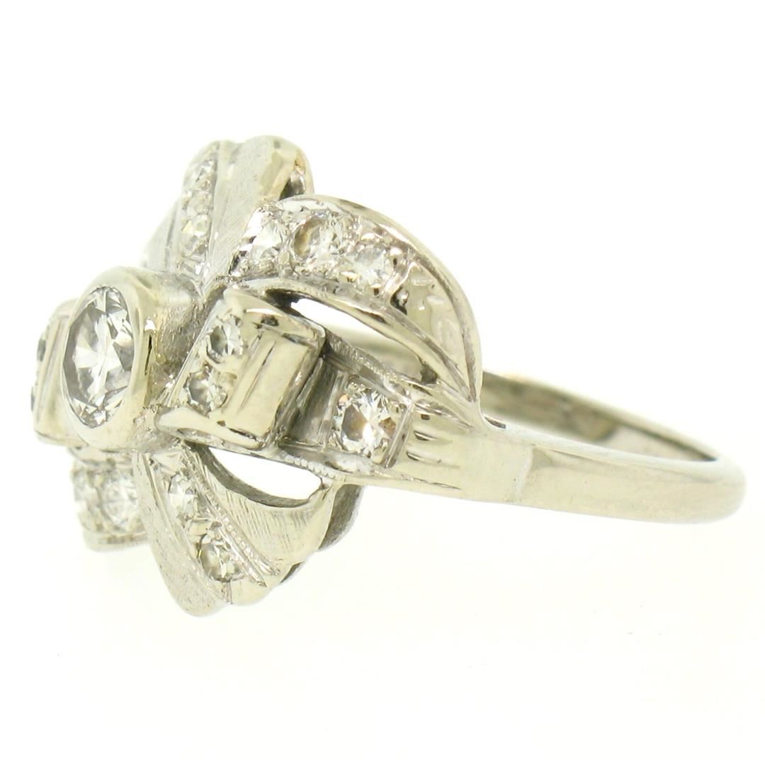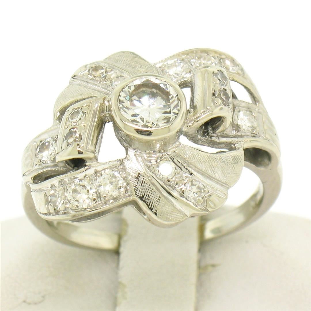 Vintage 14k White Gold 1.0ctw Round Brilliant & Single Cut Diamond Cocktail Ring. Please see photos and description for all available information. A vintage solid 14k whte gold cocktail ring, with 1 round brilliant cut natural diamond (G- VS1; 0.50ct), and 16 round brilliant cut natural diamonds (G/H - VS1/VS2; 0.50ctw). The ring is size 7.0, weighs a total of 5.2 grams, and measures 15.75mm wide.
