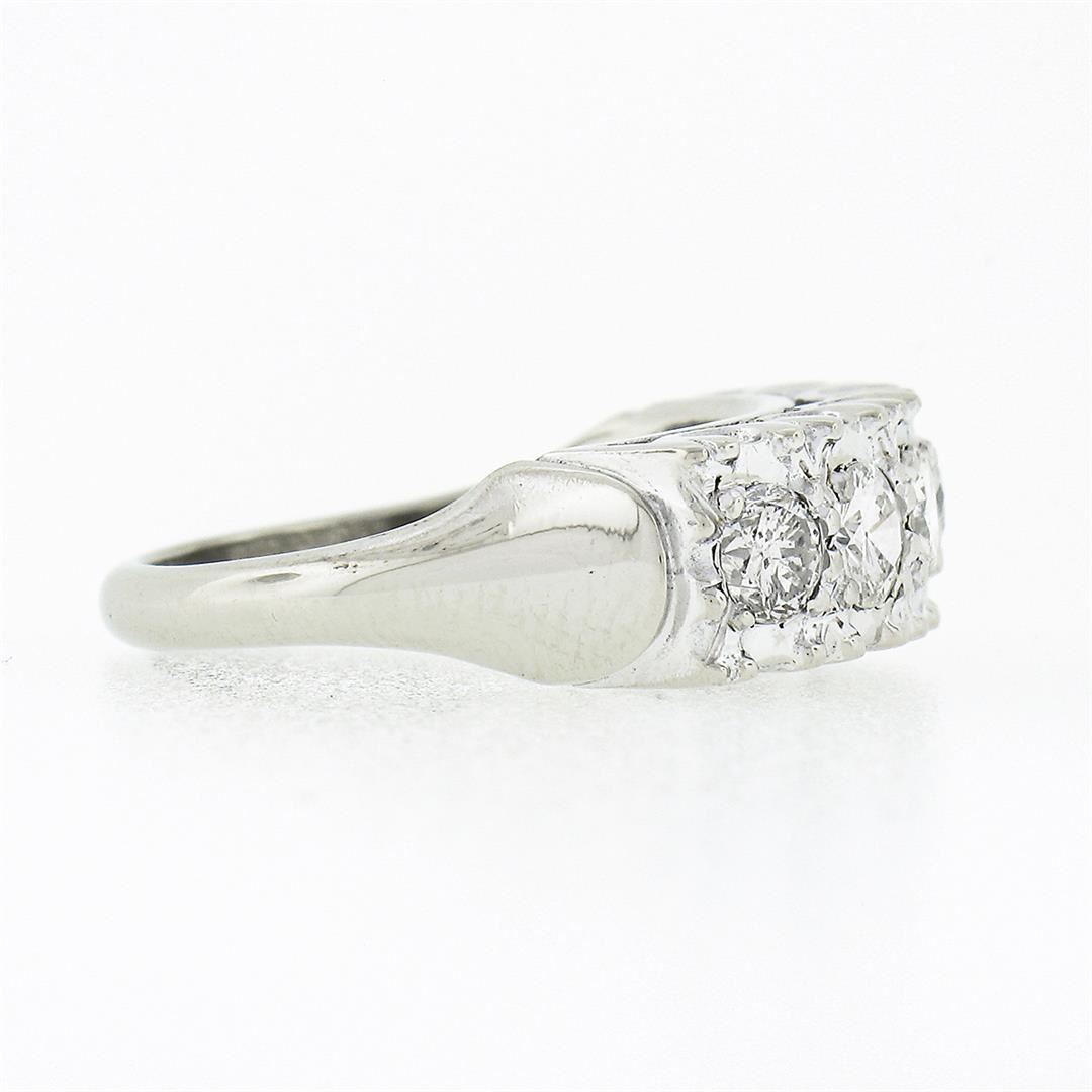 A solid 14k white gold wide band ring, with 5 round brilliant cut natural diamonds (G/H - SI1/SI2 ; 1.08ctw). The ring is size 6.0, weighs a total of 4.29 grams, and measures 6.50mm wide.
