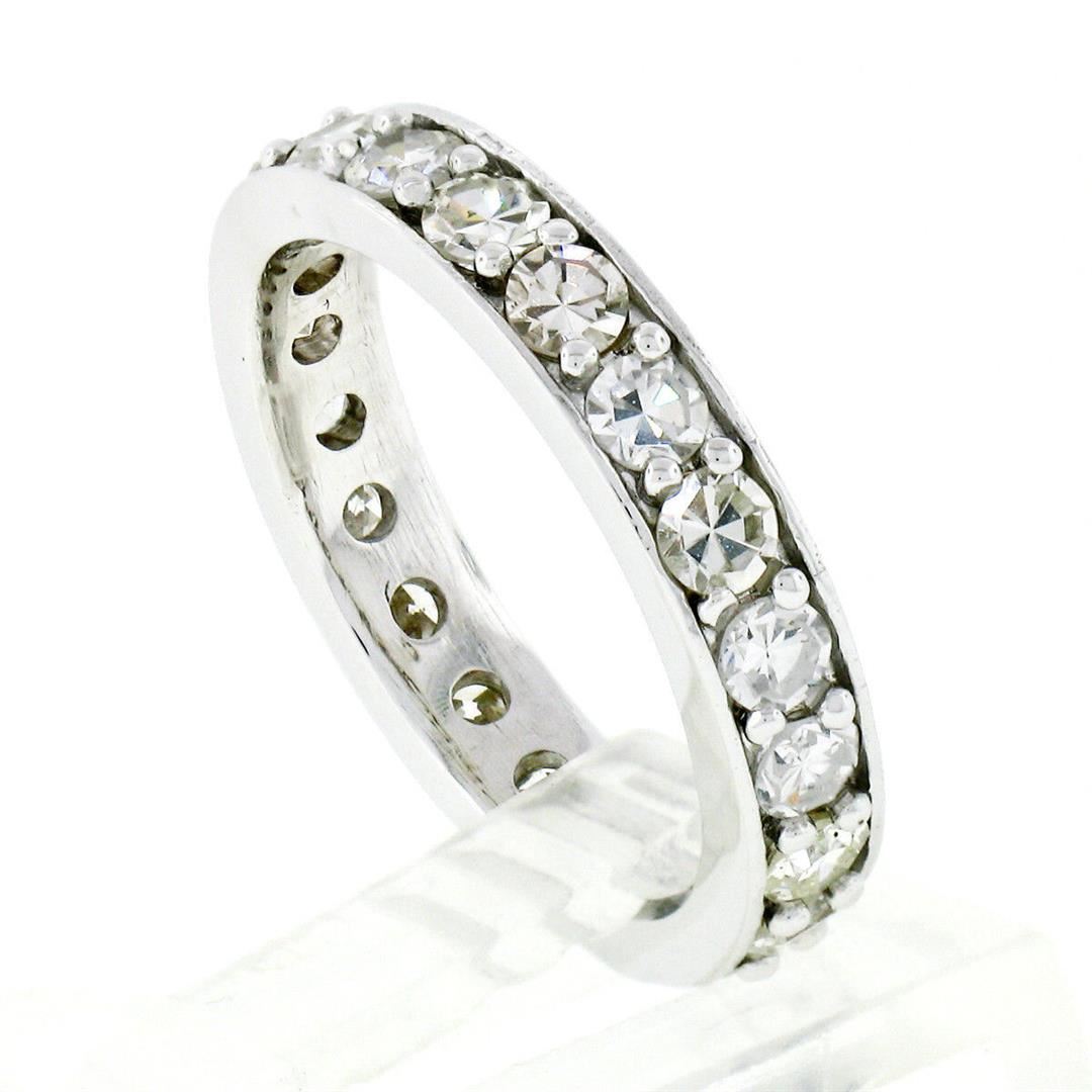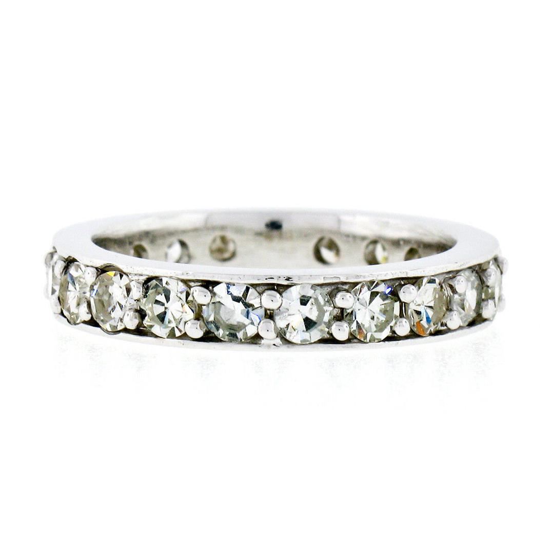 A vintage solid 14k white gold eternity band ring, with 20 old single cut natural diamonds (G/H- VS1/VS2; 1.57ctw). The ring is size 6.0, weighs a total of 4.02 grams, and measures 3.60mm wide.