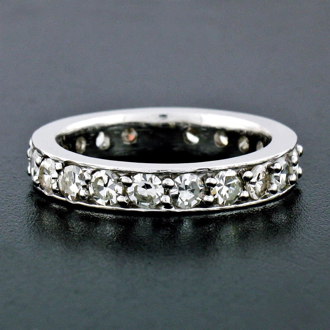 A vintage solid 14k white gold eternity band ring, with 20 old single cut natural diamonds (G/H- VS1/VS2; 1.57ctw). The ring is size 6.0, weighs a total of 4.02 grams, and measures 3.60mm wide.