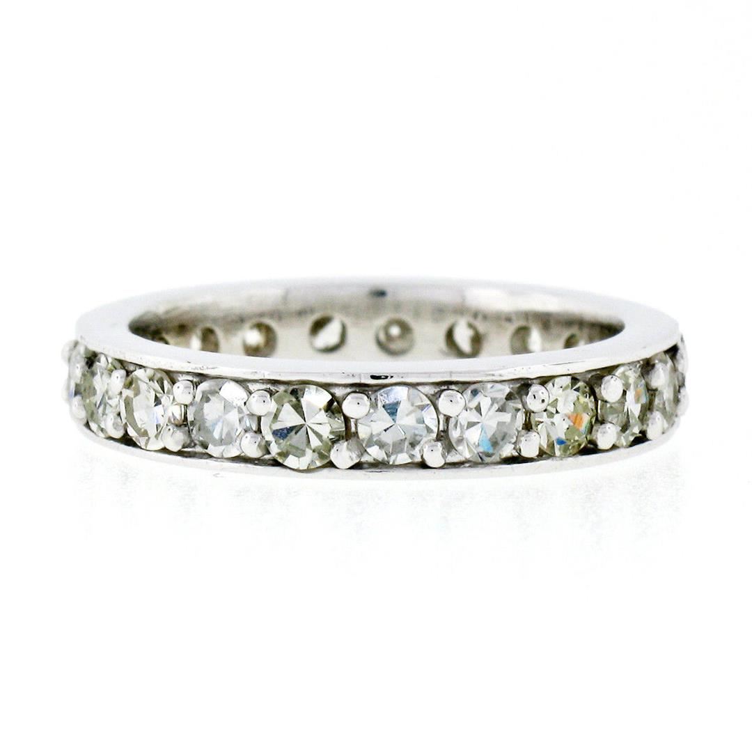 A vintage solid 14k white gold eternity band ring, with 20 old single cut natural diamonds (G/H- VS1/VS2; 1.57ctw). The ring is size 6.0, weighs a total of 4.02 grams, and measures 3.60mm wide.