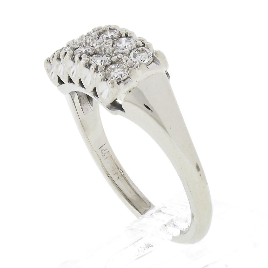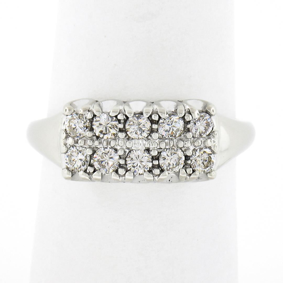 A vintage solid 14k white gold two row band ring, with 10 round cut natural diamonds (G/I - SI1/SI2 w/ a few I1 ; 0.45ctw). The ring is size 6.5, weighs a total of 3.86 grams, and measures 7.2mm wide.