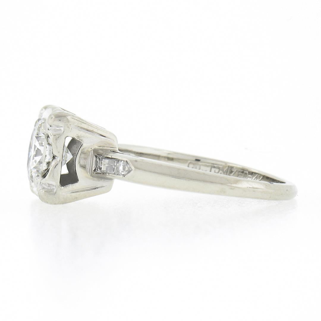 A vintage solid 14k white gold engagement ring, with 1 old transitional cut, 2 baguette cut & 2 single cut natural diamonds (G/H - VS1-SI1 ; 0.94ctw). The ring is size 4.5, weighs a total of 2.70 grams, and measures 8mm wide.