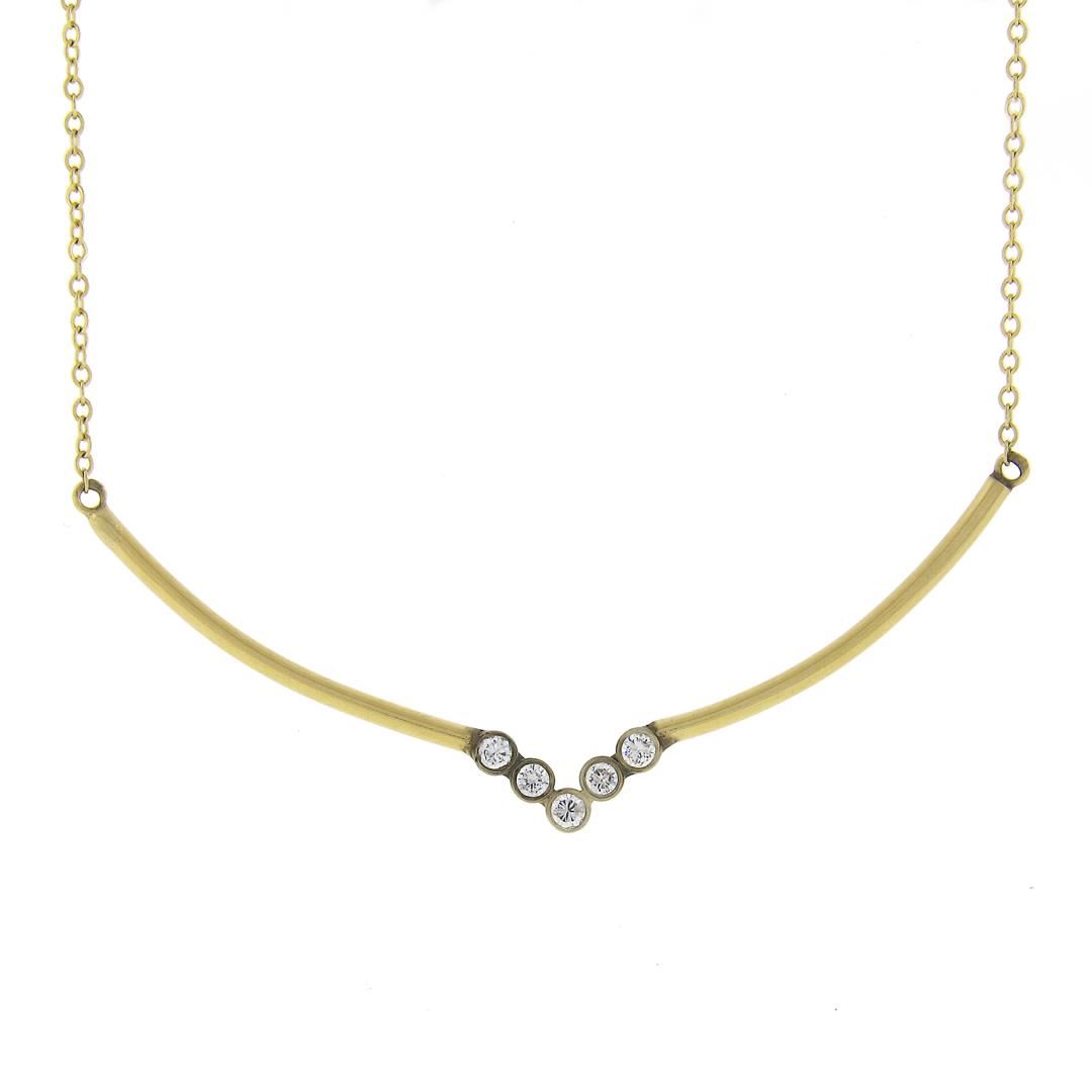 Vintage 14k Yellow Gold 0.30ctw Bezel Diamond Chevron "V" Drop Collier Necklace