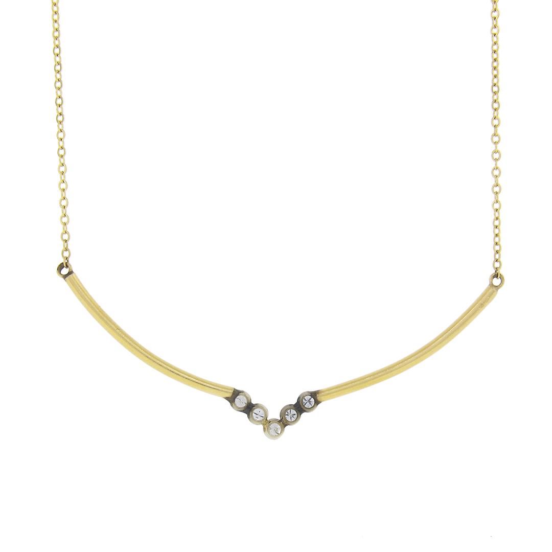 Vintage 14k Yellow Gold 0.30ctw Bezel Diamond Chevron "V" Drop Collier Necklace