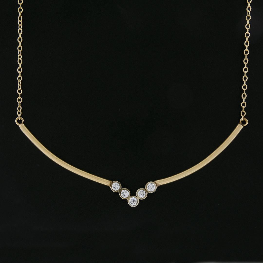 Vintage 14k Yellow Gold 0.30ctw Bezel Diamond Chevron "V" Drop Collier Necklace