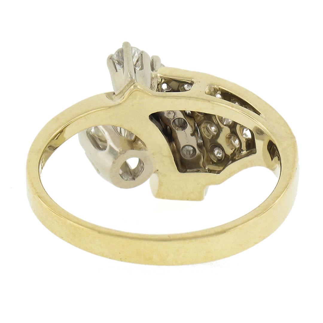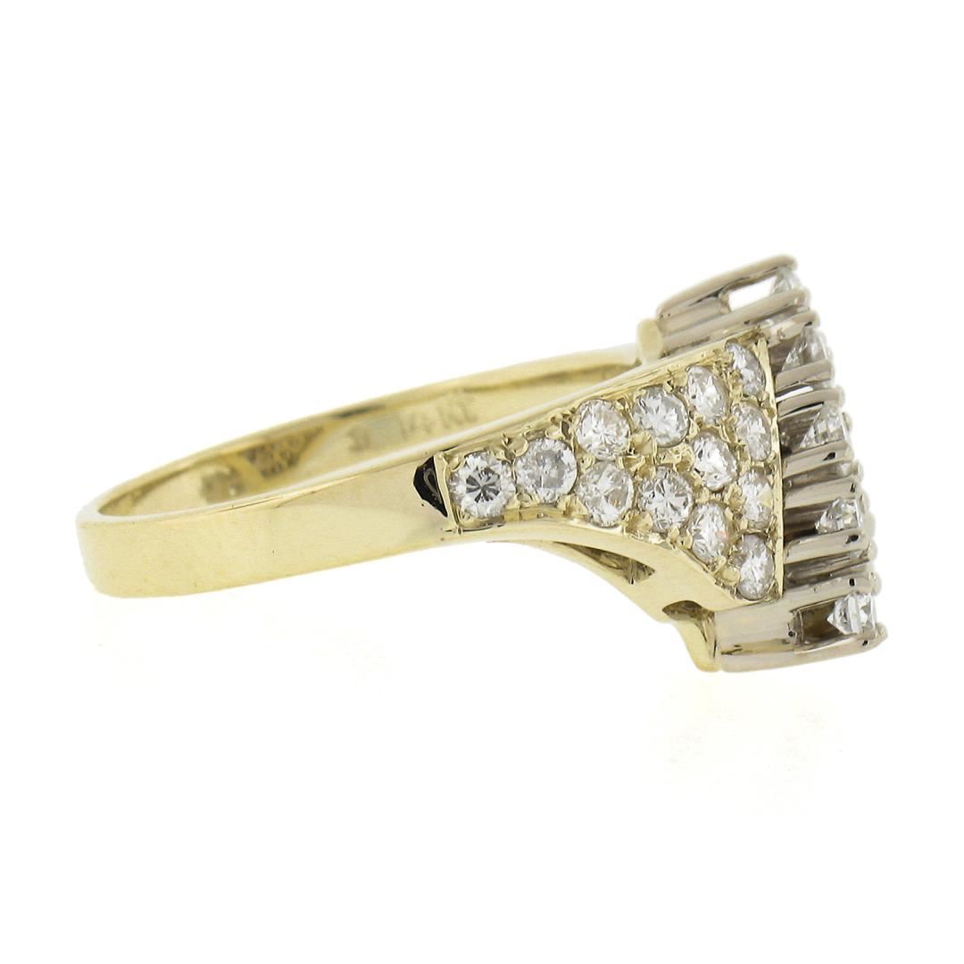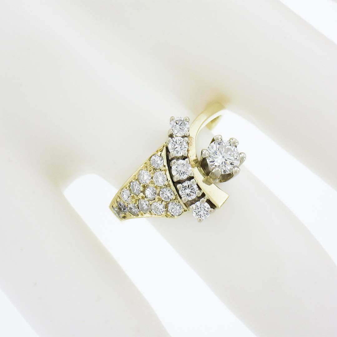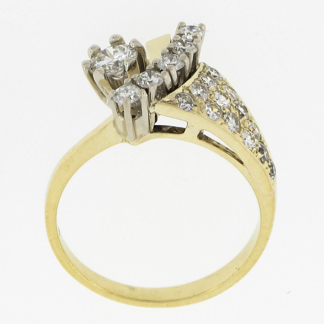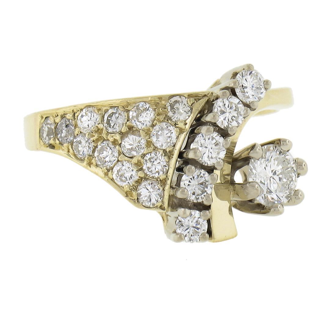 A vintage solid 14k yellow gold ring, with 19 round cut natural diamonds (G/H - SI1-I1 ; 0.90ctw). The ring is size 7.0, weighs a total of 4.82 grams, and measures 12.7mm wide.