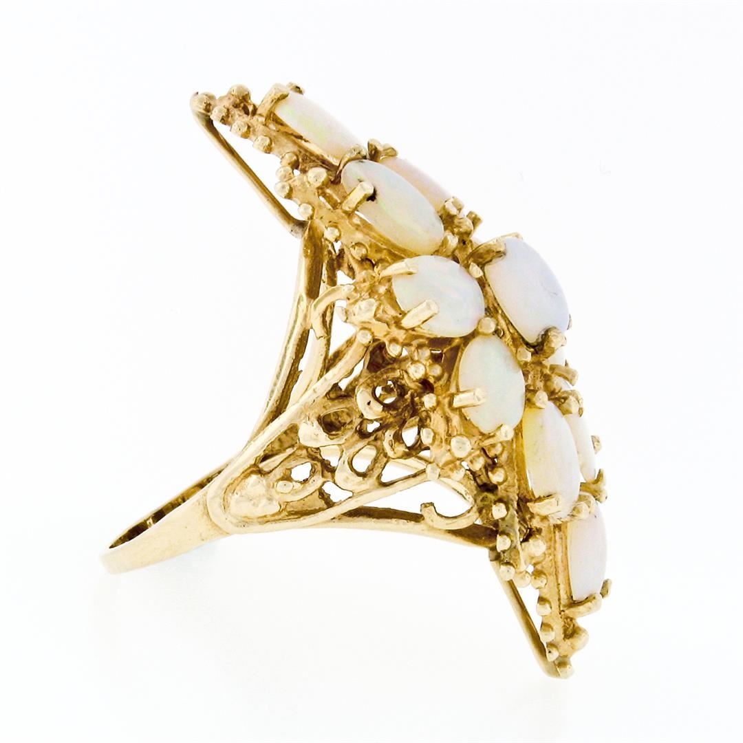 A vintage soldi 14k yellow gold cocktail ring, with 11 oval cabochon cut natural opal (7x5mm). The ring is size 8.5, weighs a total of 10.53 grams, and measures 40.45mm wide.
