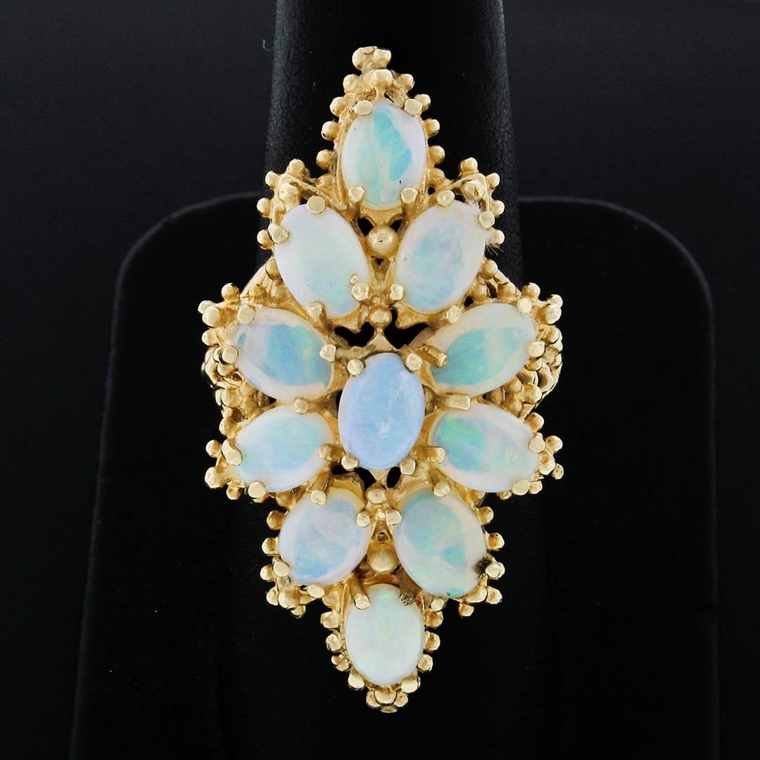 A vintage soldi 14k yellow gold cocktail ring, with 11 oval cabochon cut natural opal (7x5mm). The ring is size 8.5, weighs a total of 10.53 grams, and measures 40.45mm wide.