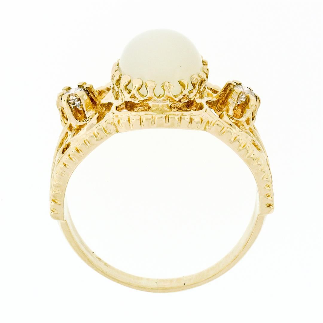 Vintage 14k Yellow Gold Oval Cat's Eye Moonstone & .14 ctw Diamond Cigar Band Ri
