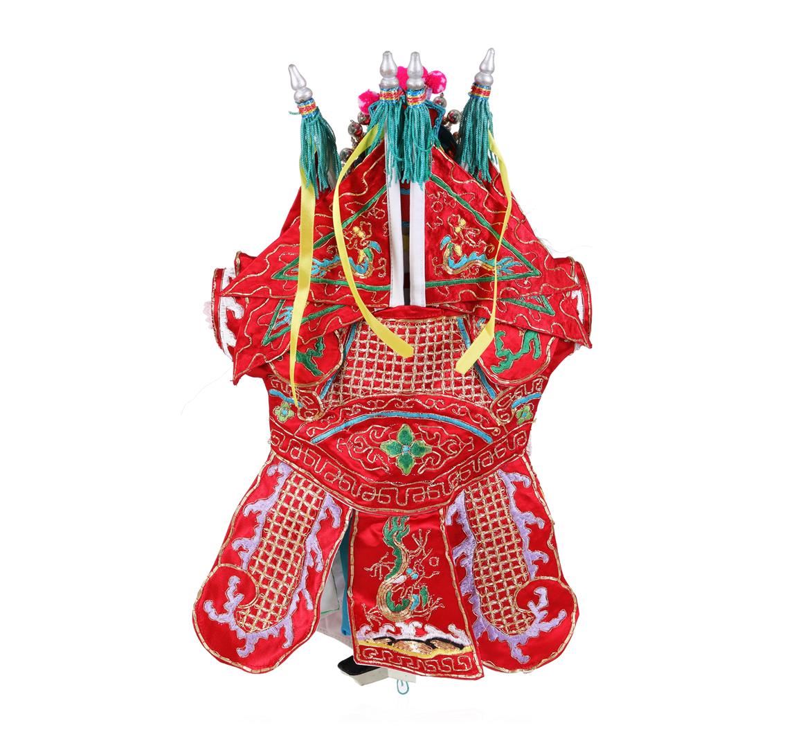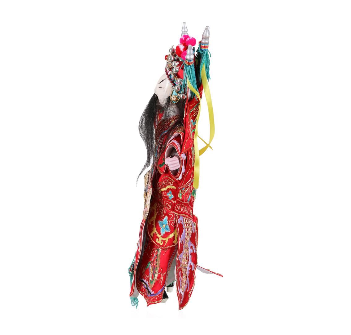 Ornately dress Chinese man doll/puppet with a soft fabric body and composition hands, face and feet. Very elaborate headdress, measures 17" tall overall.