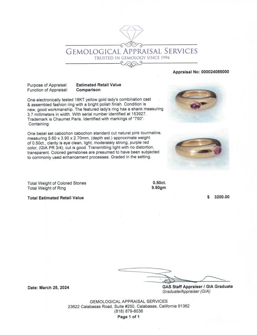Vintage 18K Gold & Amethyst Ring by Chaumet. Containing one bezel set cabochon pink tourmaline weighing approximately 0.50 cts. Total weight is 9.5 gm. Estimated retail value $3,200.