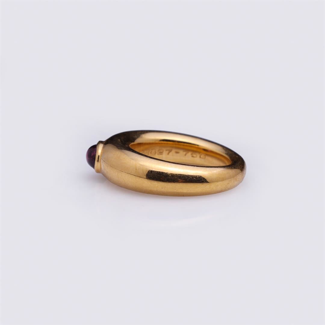 Vintage 18K Gold & Amethyst Ring by Chaumet. Containing one bezel set cabochon pink tourmaline weighing approximately 0.50 cts. Total weight is 9.5 gm. Estimated retail value $3,200.