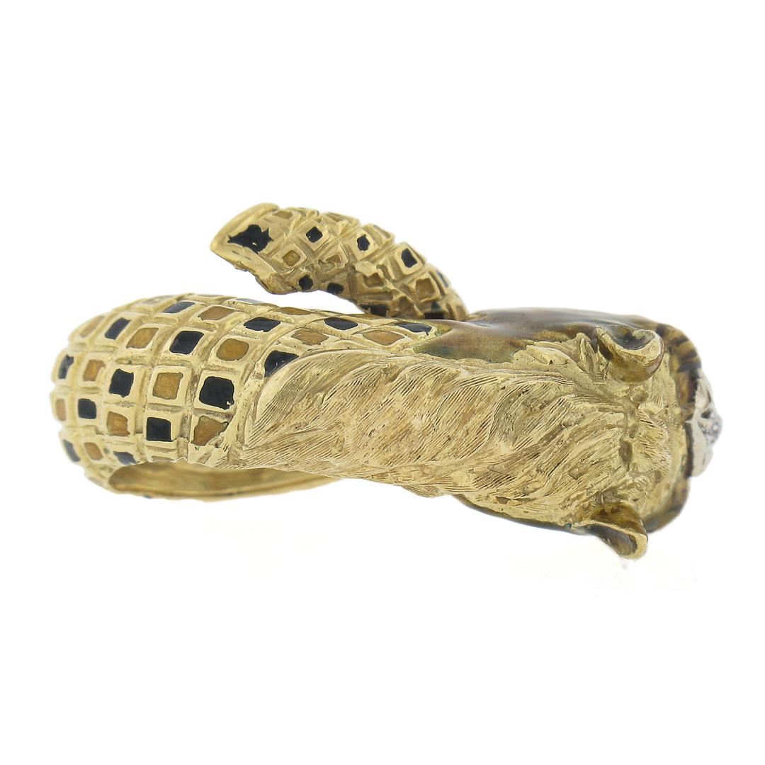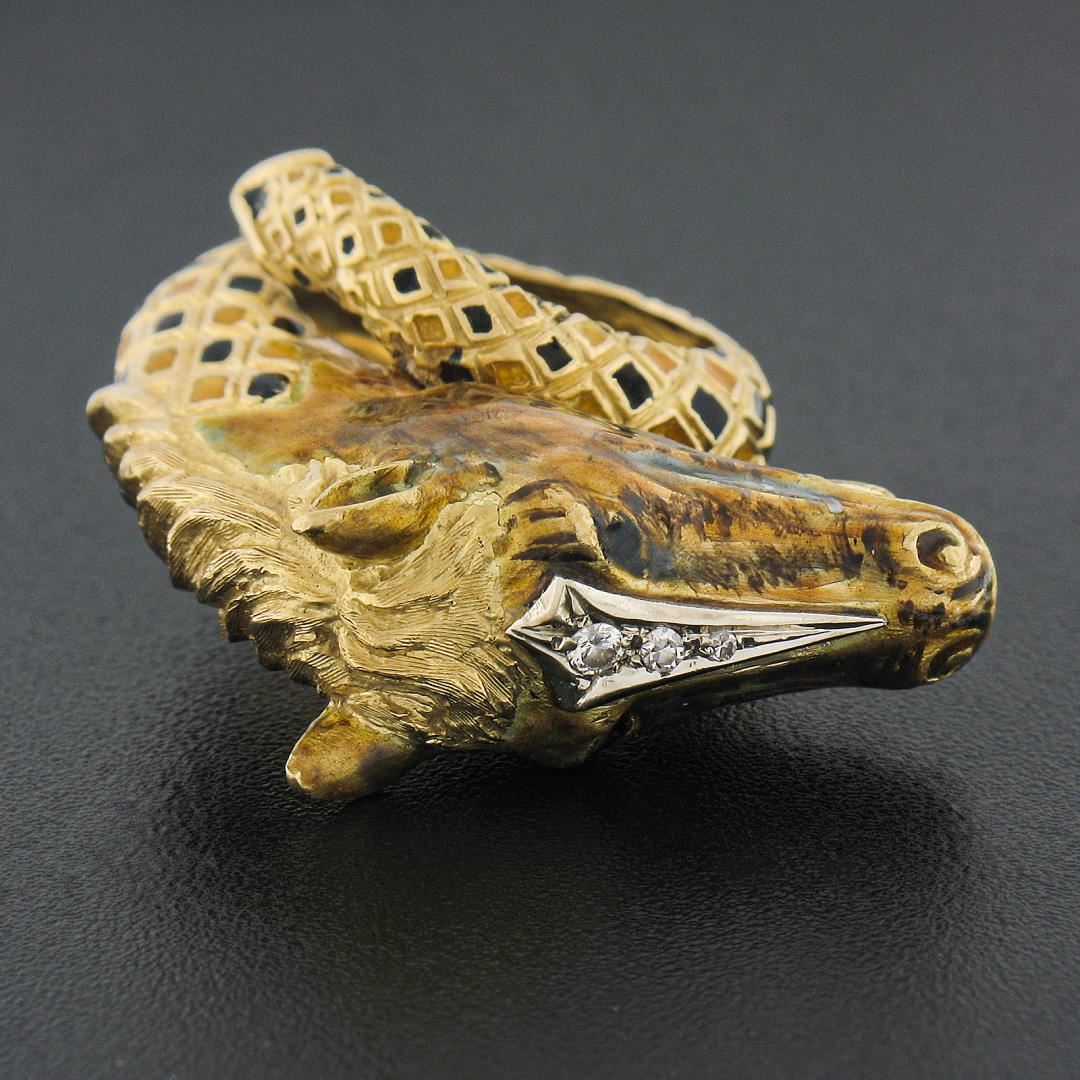 Vintage 18K Gold Detailed 3D Horse Head Band Ring w/ Enamel Work & Diamond