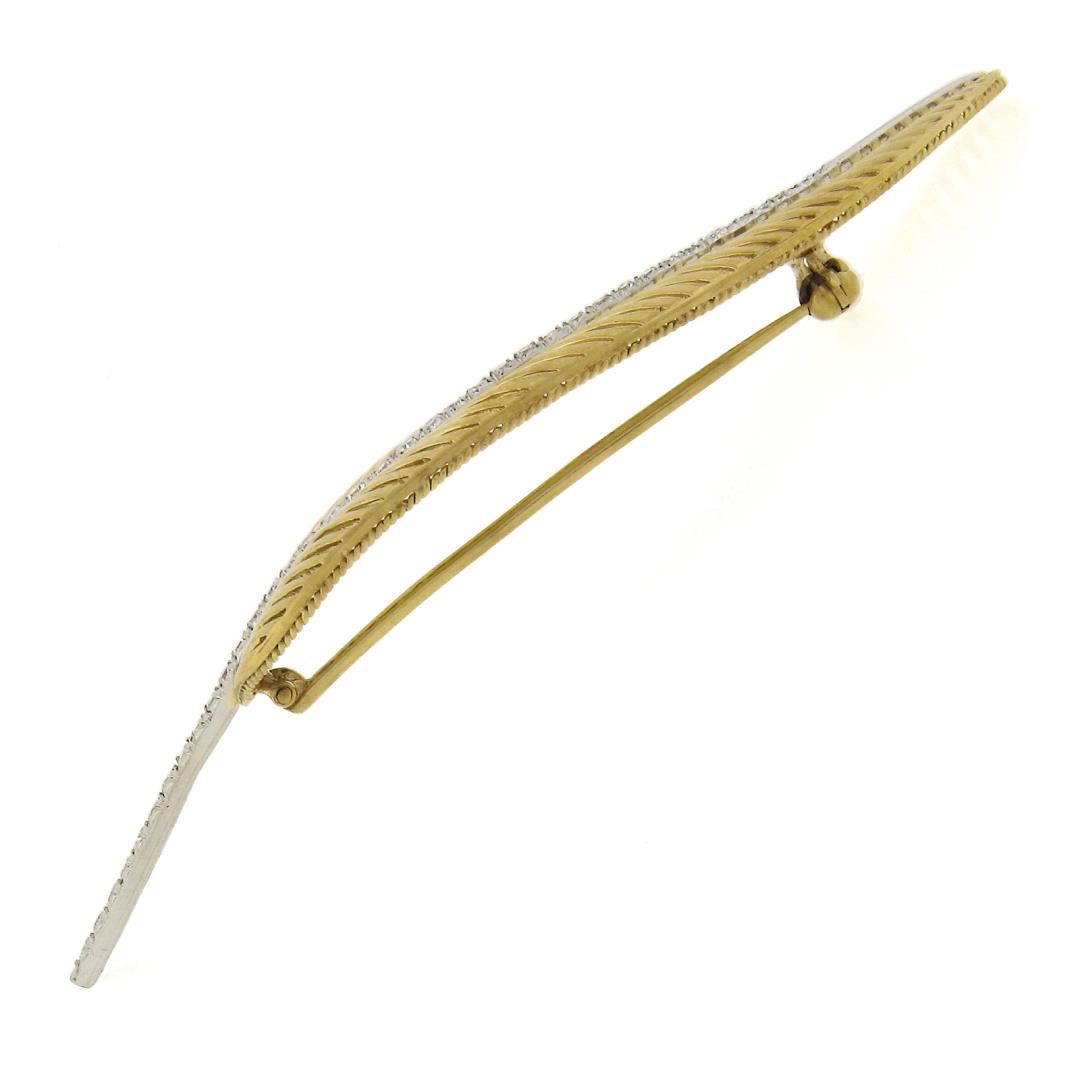 Vintage 18K Gold & Platinum 1ctw Diamond Polished Long Feather Leaf Brooch Pin