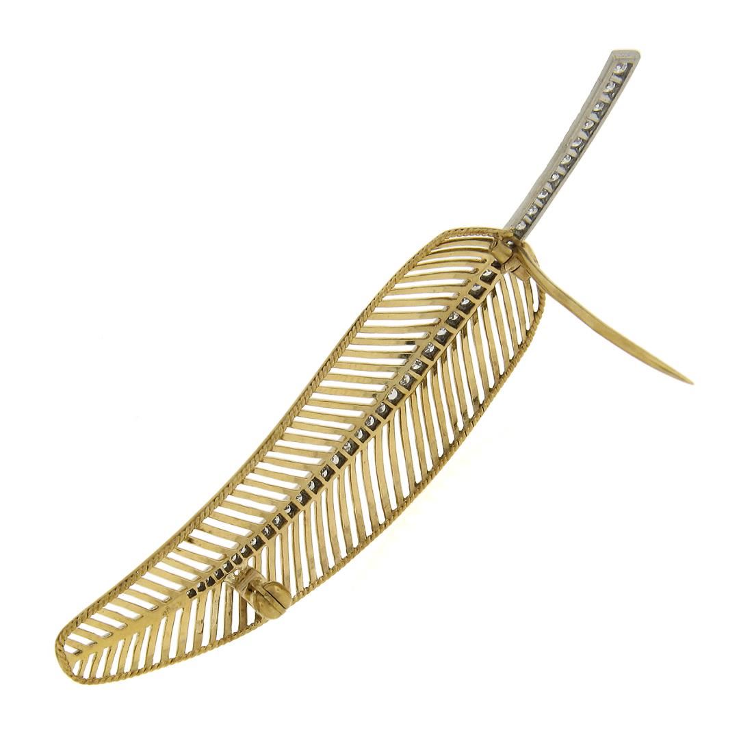 Vintage 18K Gold & Platinum 1ctw Diamond Polished Long Feather Leaf Brooch Pin