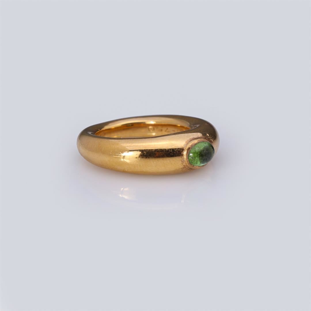 Vintage 18K Gold & Tourmaline Ring by Chaumet Containing one bezel set cabochon pink tourmaline weighing approximately 0.60 cts. Total weight is 9.3 gm. Estimated retail value $3,600.