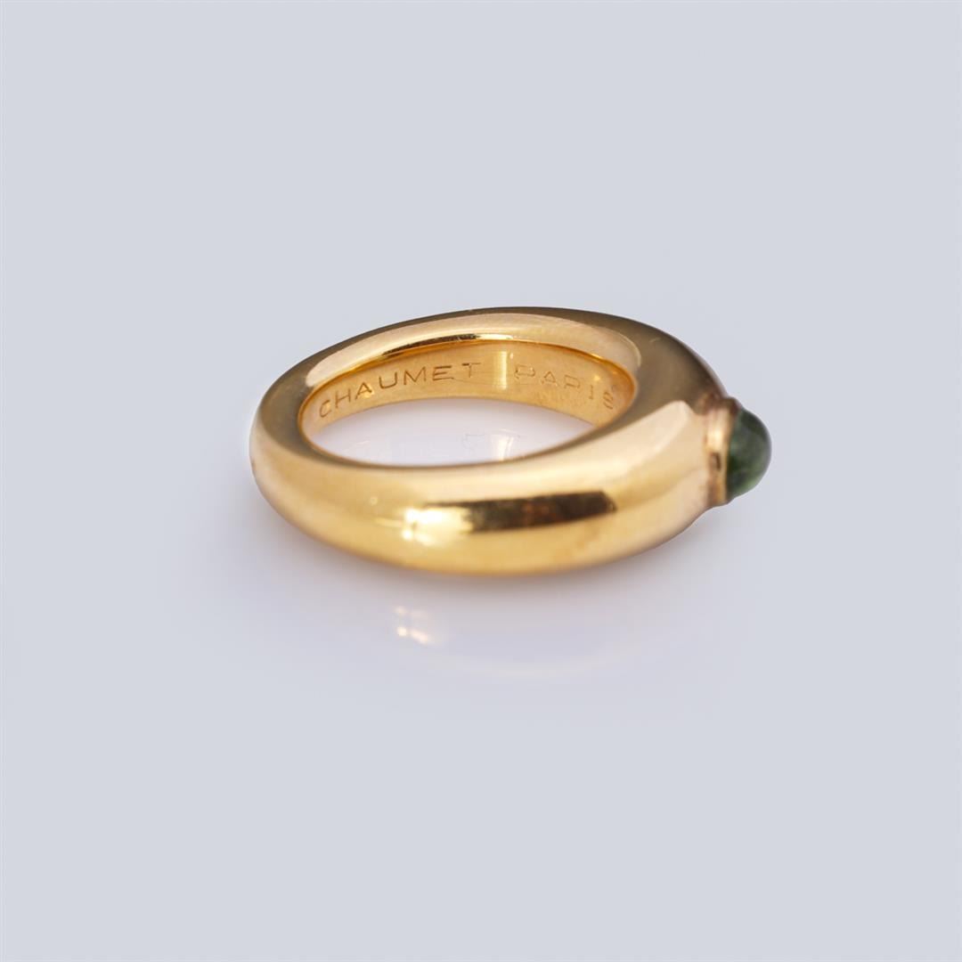 Vintage 18K Gold & Tourmaline Ring by Chaumet Containing one bezel set cabochon pink tourmaline weighing approximately 0.60 cts. Total weight is 9.3 gm. Estimated retail value $3,600.