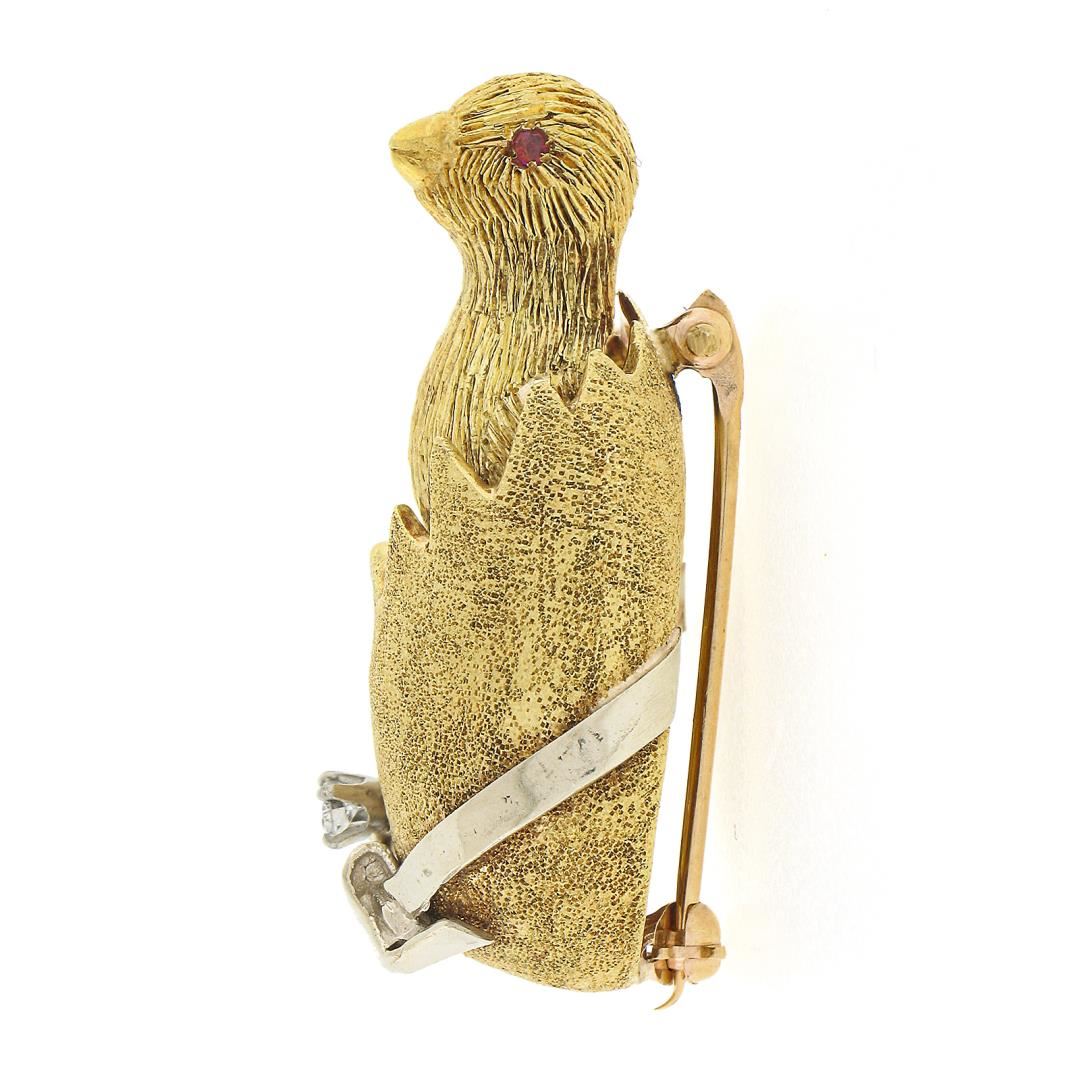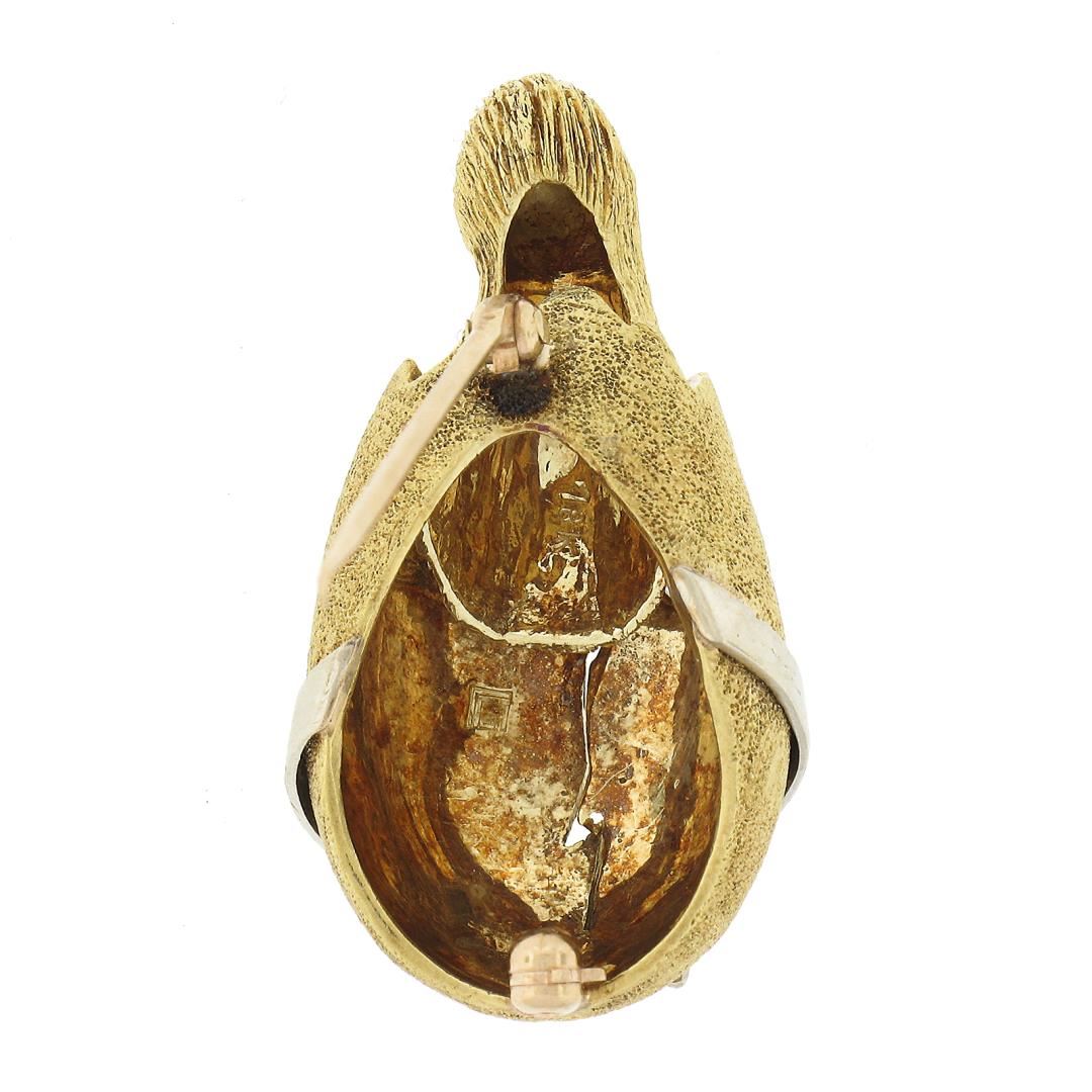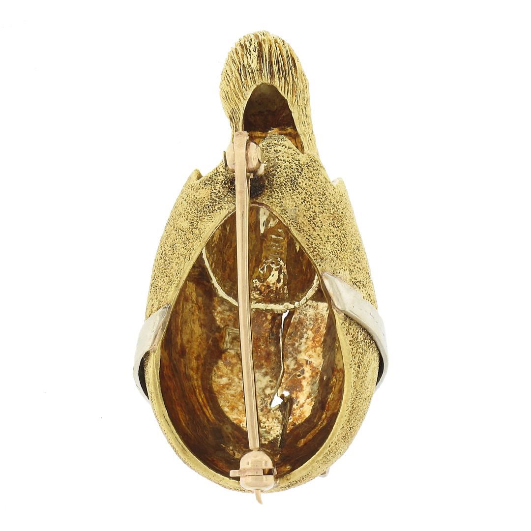 Vintage 18K TT Gold Detailed Textured Chick Bird Breaking Out of Egg Pin Brooch