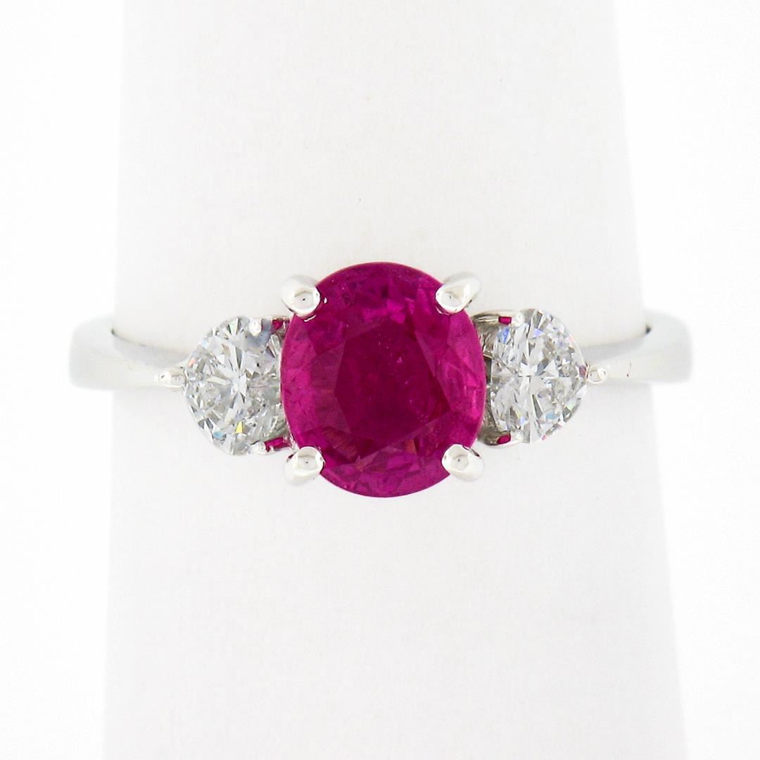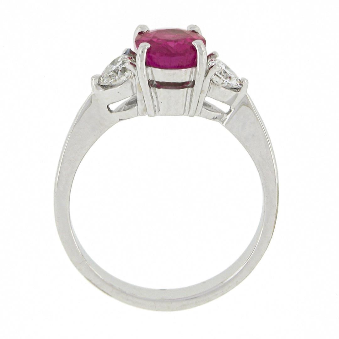 A vintage solid 18k white gold ring, with 1 GIA graded oval cut natural pink sapphire (1.20ct), and 2 heart brilliant cut natural diamonds (E/F - VS1/VS2 ; 0.36ctw). The ring is size 6.0, weighs a total of 3.53 grams, and measures 6.85mm wide. Comes with all original relevant certifications.
