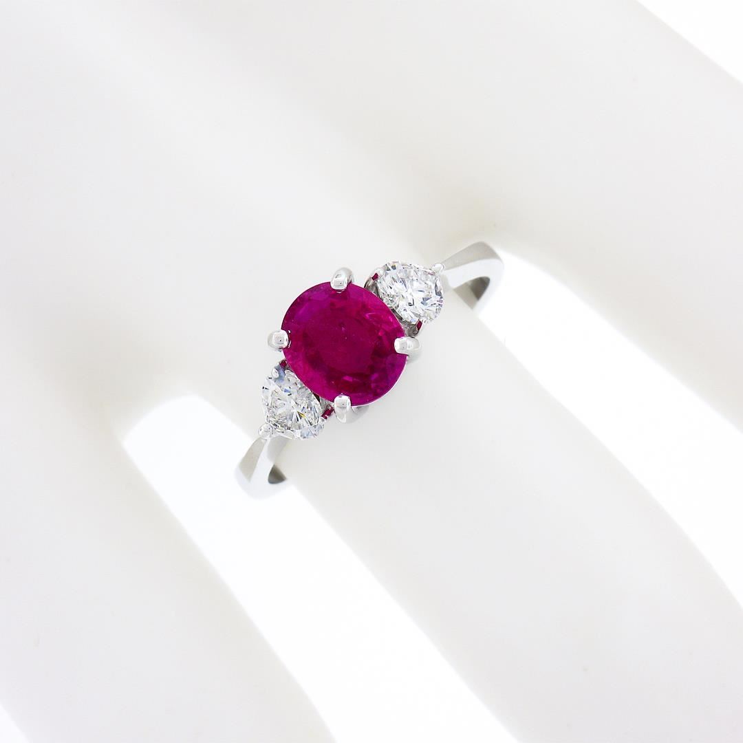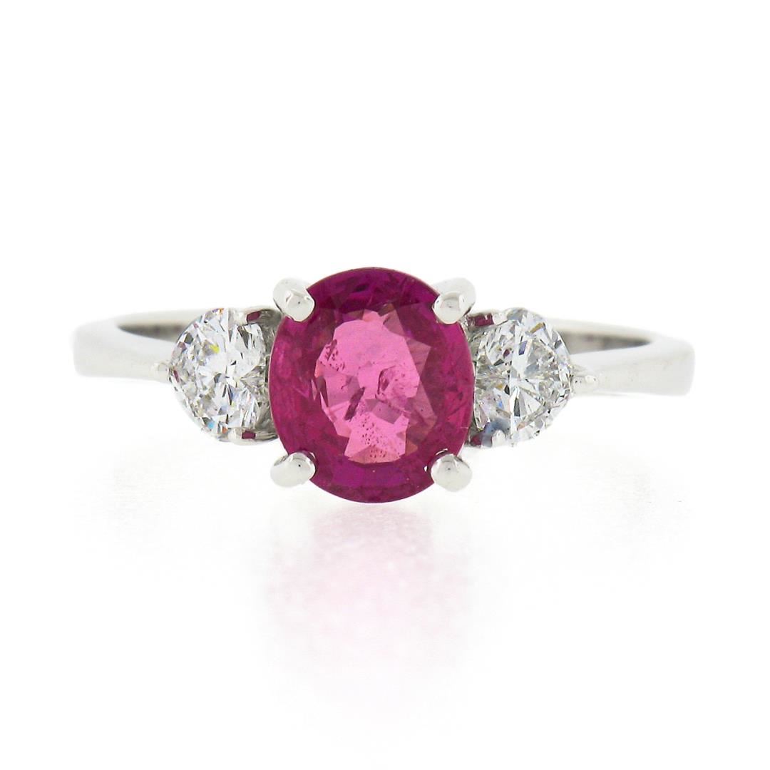 A vintage solid 18k white gold ring, with 1 GIA graded oval cut natural pink sapphire (1.20ct), and 2 heart brilliant cut natural diamonds (E/F - VS1/VS2 ; 0.36ctw). The ring is size 6.0, weighs a total of 3.53 grams, and measures 6.85mm wide. Comes with all original relevant certifications.