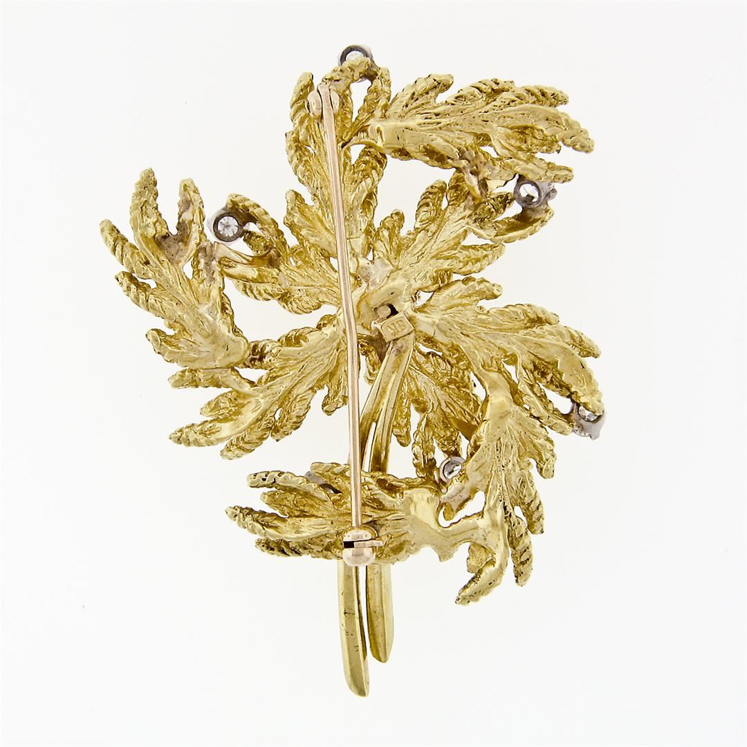 A vintage solid 18k yellow & white gold brooch, with 7 round brilliant cut natural diamonds (F/G - VS1/VS2 ; 0.65ctw). Measures 54.7x43.1mm and weighs a total of 26.22 grams.