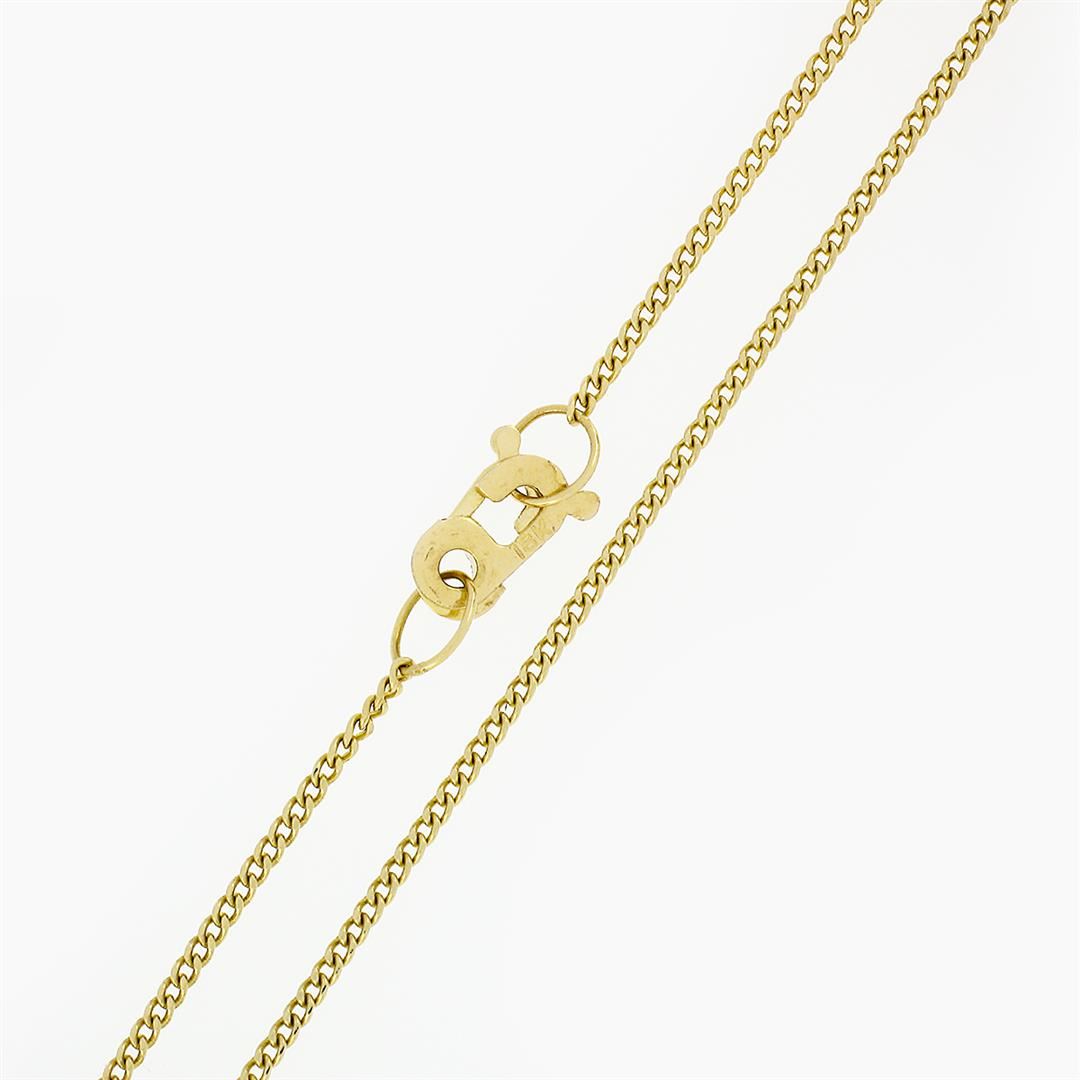 An estate solid 18k yellow gold pendant necklace, featuring 1 marquise cut natural amethyst (8.25x3.95mm), with 1 oval cut natural blue topaz (6.20x4.25mm), and 1 marquise cut natural garnet (8.1x4.1mm), with 1 oval cut green stone (6.25x4.45mm). The pendant weighs a total of 3.65 grams, measures 25.15x12.25mm including the bail, and 18 inch curb link chain.