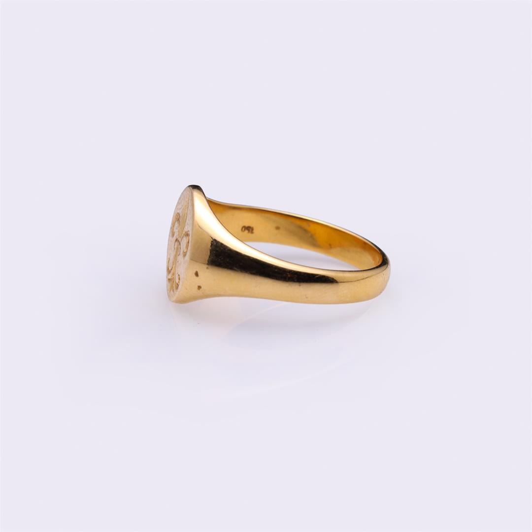Vintage 18K Yellow Gold Ring with Engraved Fleur de Lis. Total weight of 8.4 gm. Estimated retail value $1,650.
